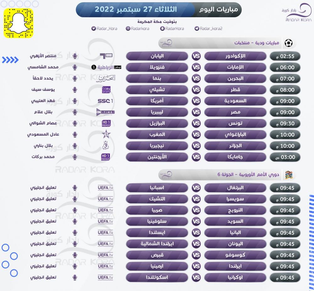 مواعيد أبرز مباريات اليوم الثلاثاء بدوري الأمم الأوروبية والقنوات الناقلة