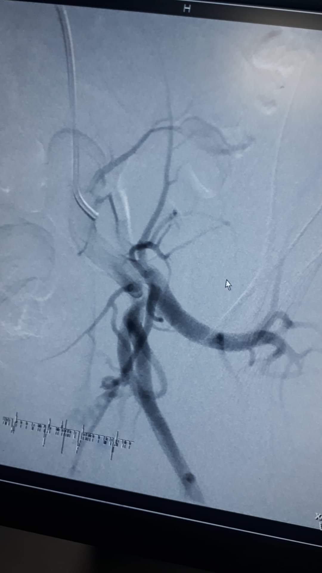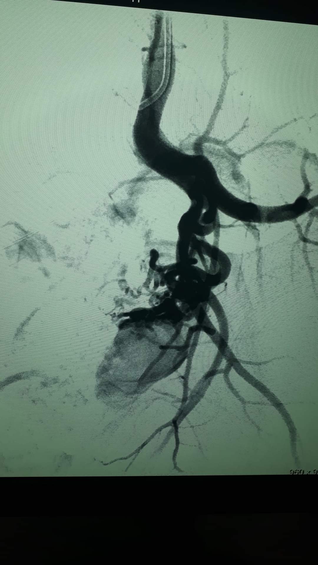 حيث تم إغلاق إنتفاخ في أحد الشرايين المتفرعة من "الشريان الحرقفي العميق" في الحوض. حيث كان يتسبب في ألام شديدة لمريض في الثانية والعشرين من عمره.