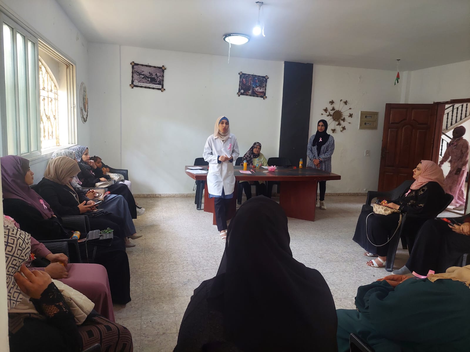وتحدثت الممرضة نسمة مشعل عن سرطان الثدي وأعراضه وأسبابه و كيفية اكتشافه المبكر، وطرق العلاج المتفاوتة للمرض بأنواعه المختلفة، مؤكدة على أهمية الفحص الذاتي للكشف المبكر عن السرطان الثدي للتمكن من العلاج في المراحل الأولى من المرض.