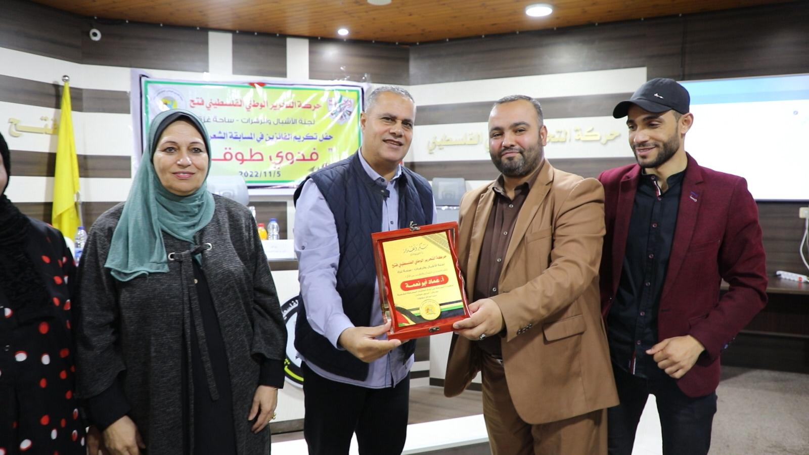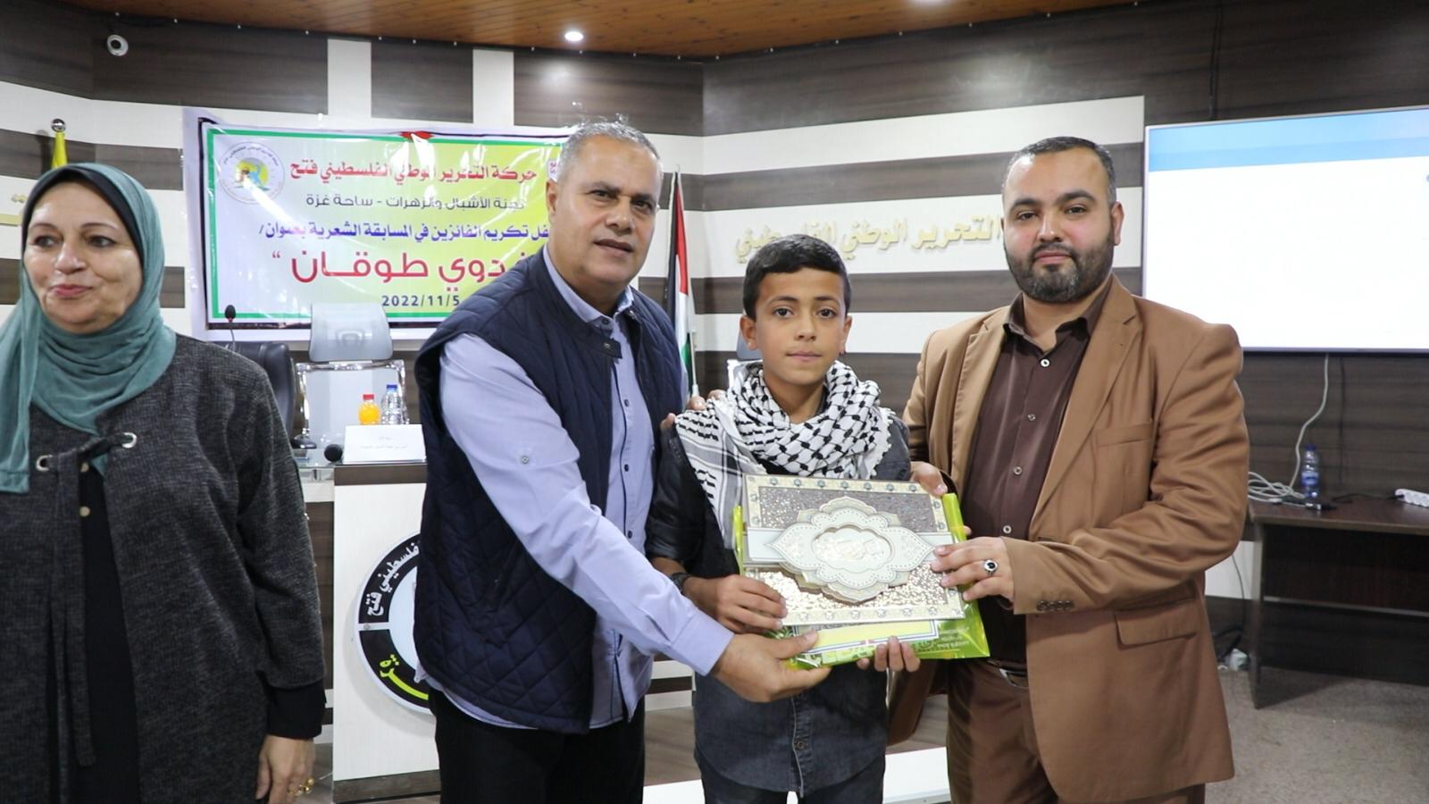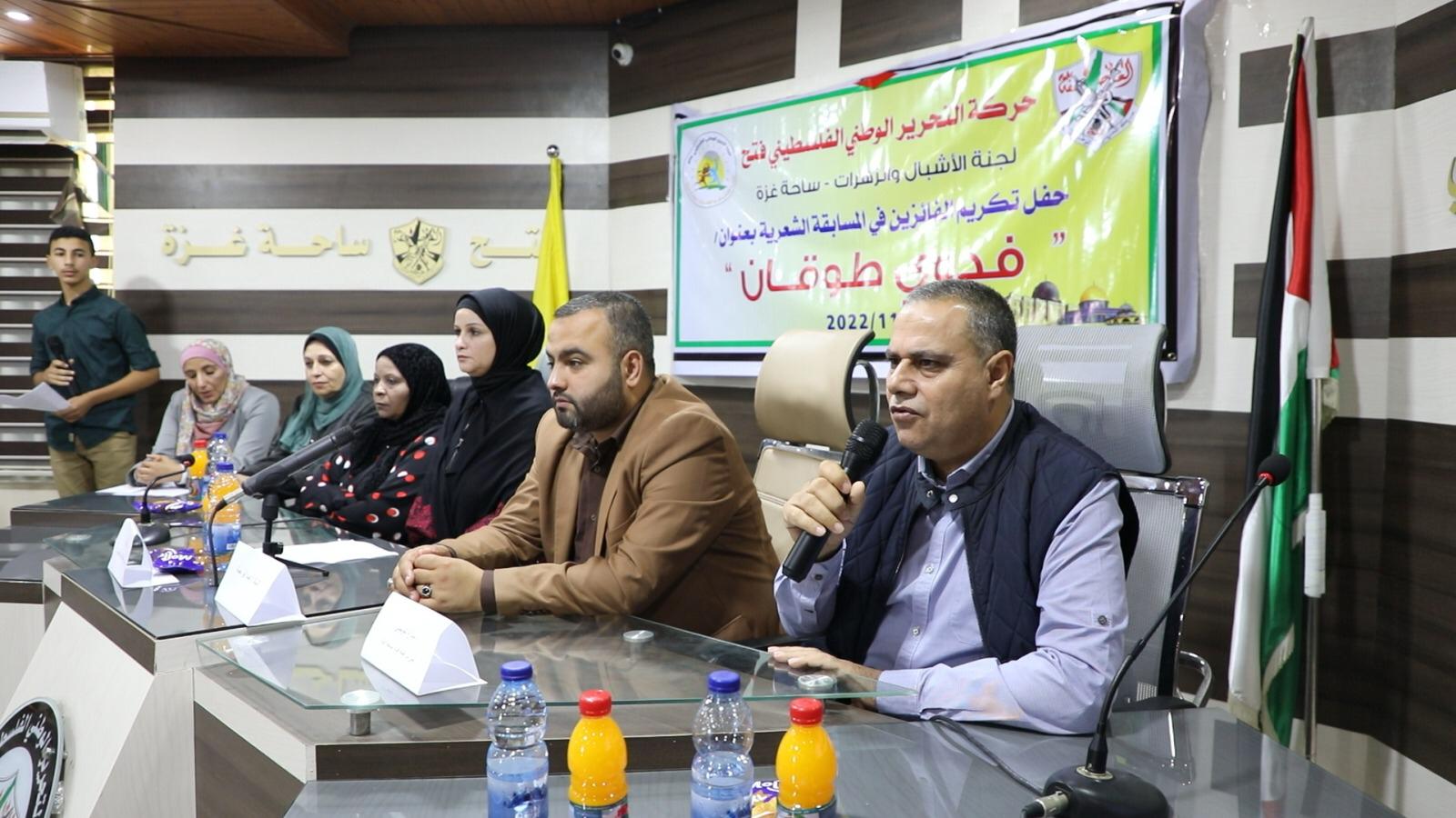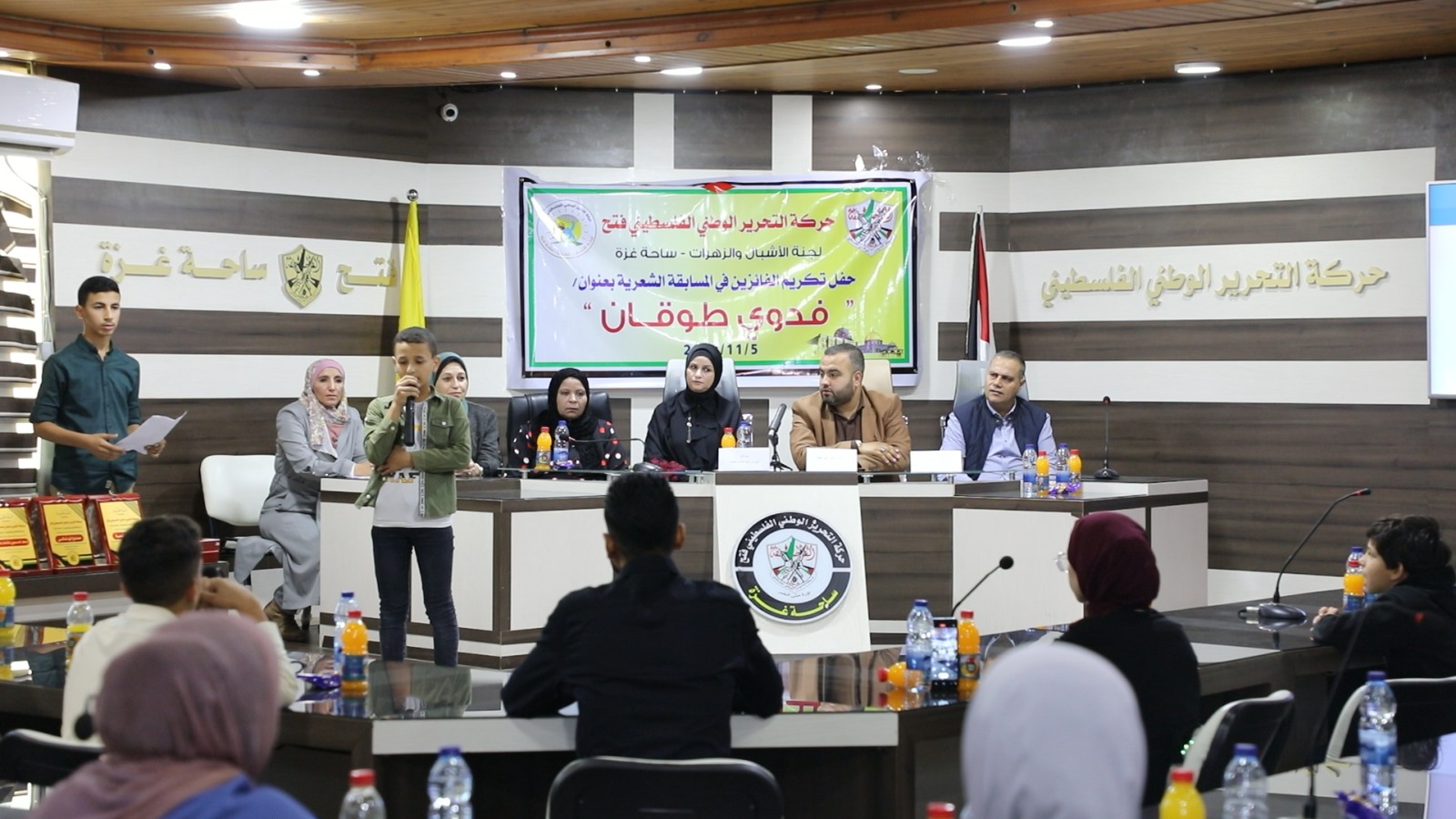 نظمت لجنة الأشبال والزهرات بساحة غزة حفل تكريم للفائزين في المسابقة الشعرية الأولى بعنوان الشاعرة الفلسطينية فدوى طوقان، بحضور الدكتور صلاح العويصي أمين سر ساحة غزة وقيادات وكوادر التيار .