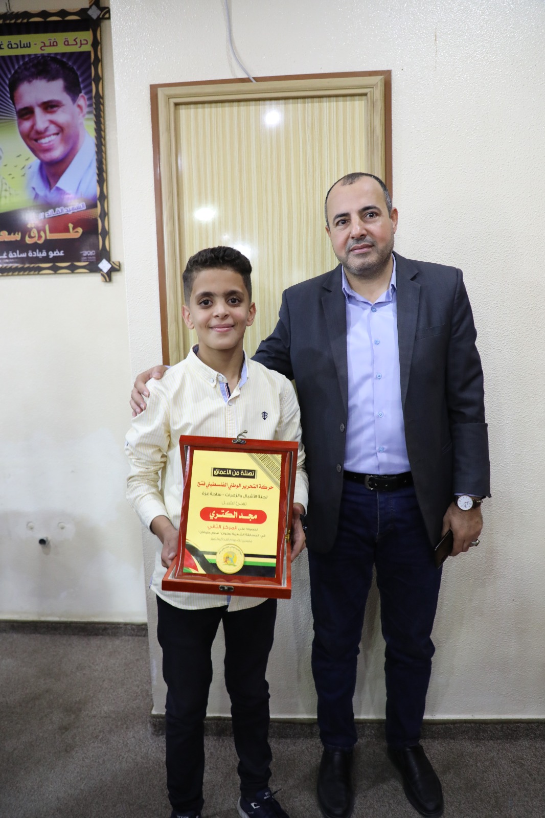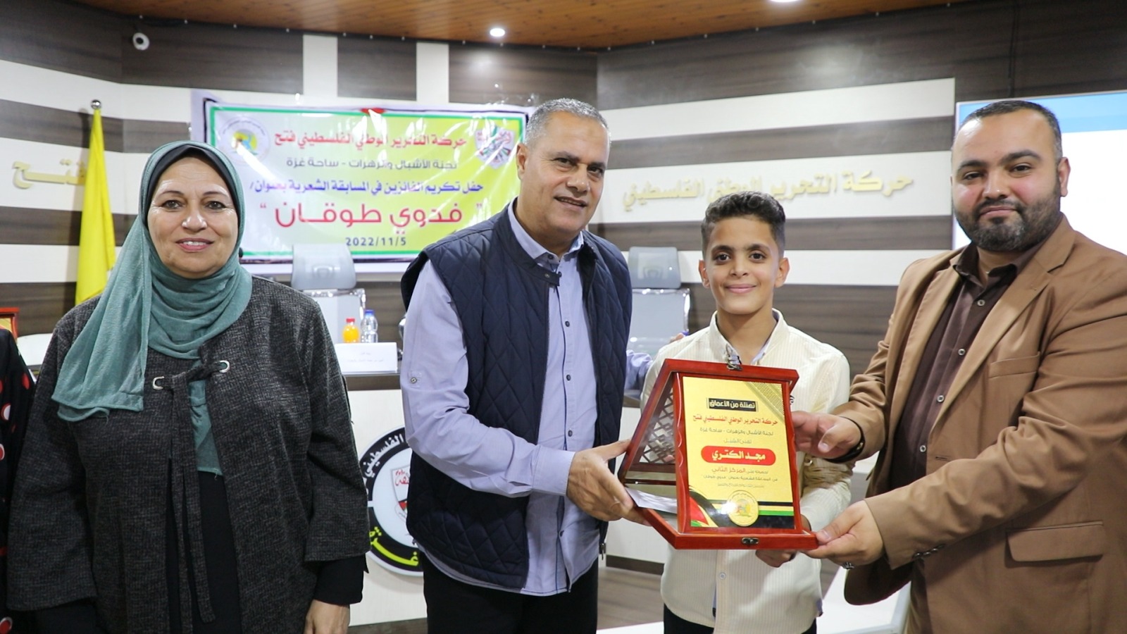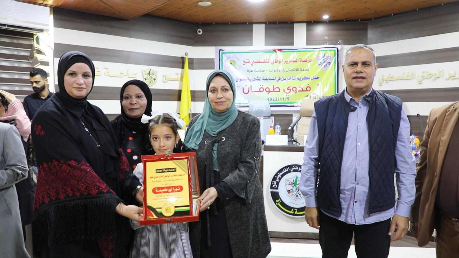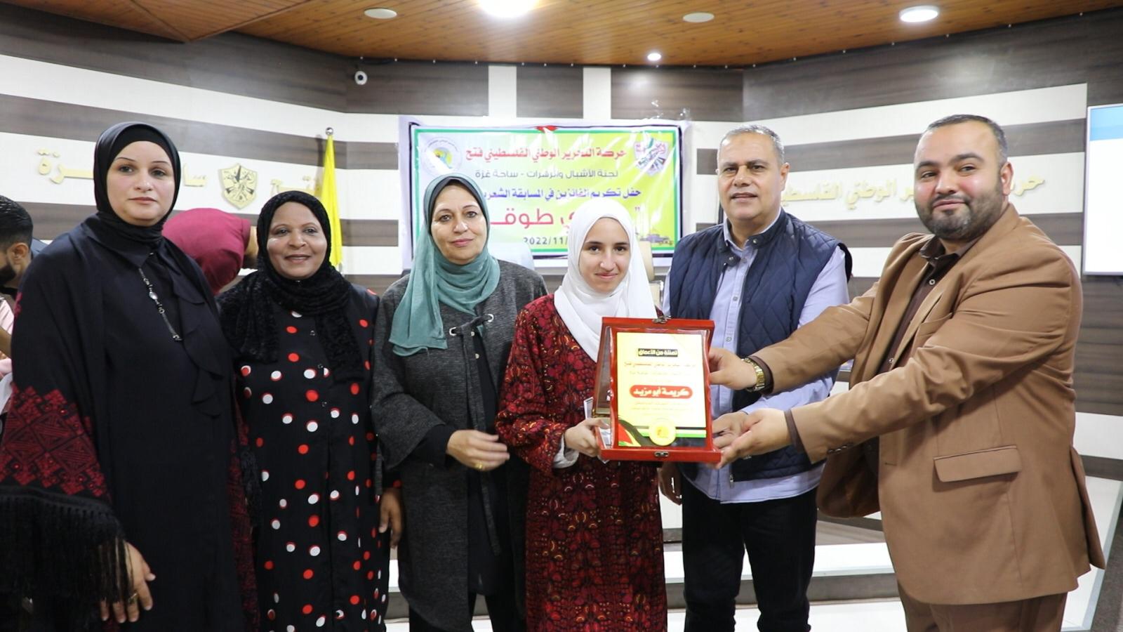 نظمت لجنة الأشبال والزهرات بساحة غزة حفل تكريم للفائزين في المسابقة الشعرية الأولى بعنوان الشاعرة الفلسطينية فدوى طوقان، بحضور الدكتور صلاح العويصي أمين سر ساحة غزة وقيادات وكوادر التيار .