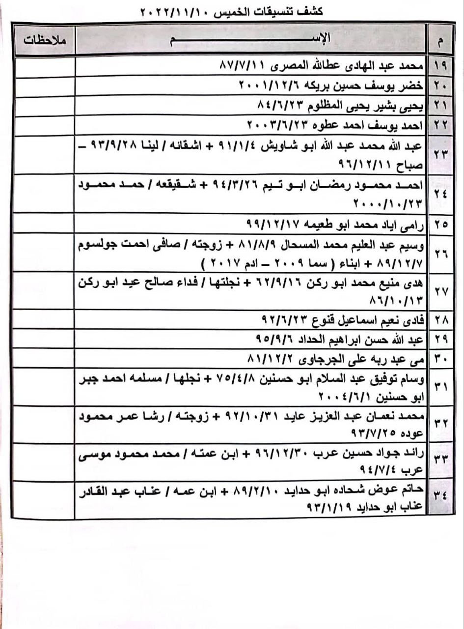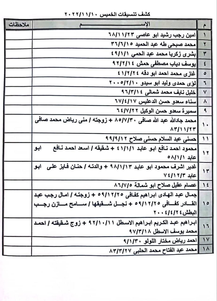 بالأسماء: كشف "تنسيقات مصرية" للسفر عبر معبر رفح الخميس 10 نوفمبر 2022