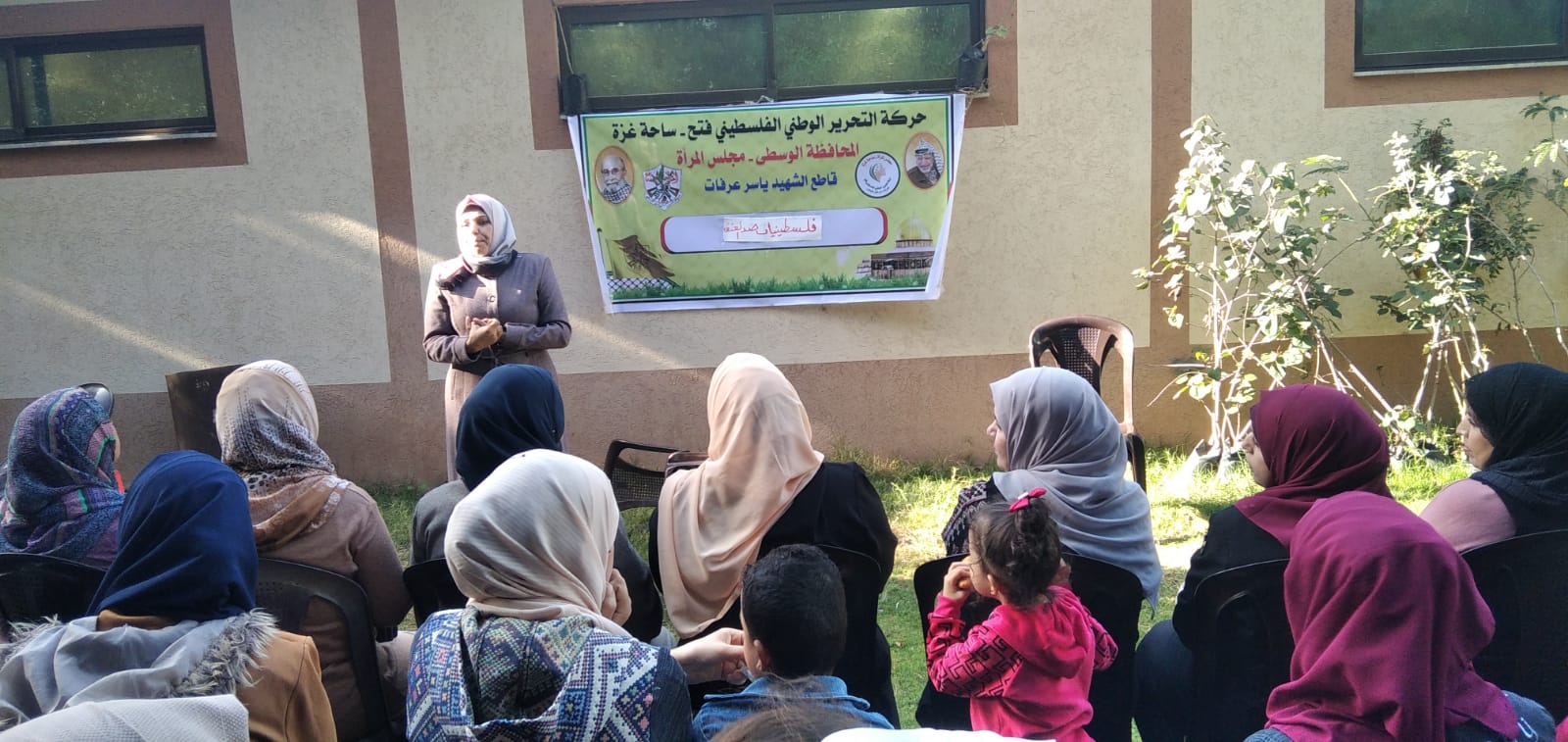 نظم مجلس المرأة في المحافظة الوسطى قاطع ياسر عرفات، مساء اليوم الأربعاء، ورشة عمل بعنوان "فلسطينيات ضد العنف" ، بالتزامن مع الحملة العالمية الـ16 يوم لمناهضة العنف ضد المرأة، بحضور حليمة زقوت أمين سر قاطع ياسر عرفات وأسامة أبو ربيع نائب أمين سر القاطع، وعدد من الأخوات الفاعلات في منطقة خليل الوزير، في مخيم دير البلح وسط قطاع غزة.