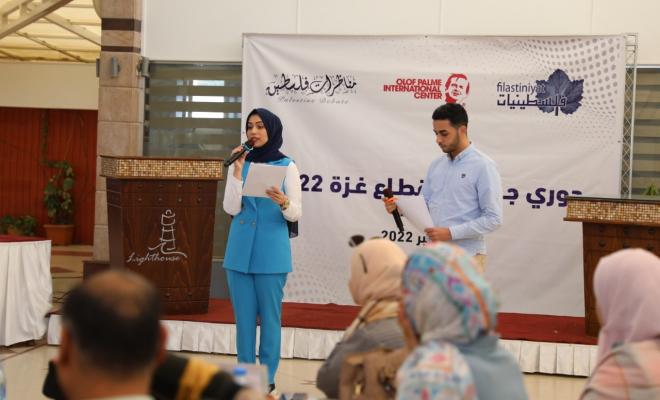 وقبل بدء المناظرة قالت وفاء عبد الرحمن مديرة مؤسسة فلسطينيات في كلمة لها، إن كل فريق شارك في دوري مناظرات جامعات قطاع غزة، كان يستحق الوصول إلى الجولة النهائية، وكل المتناظرين والمتناظرات قدموا أداءً متميزًا.