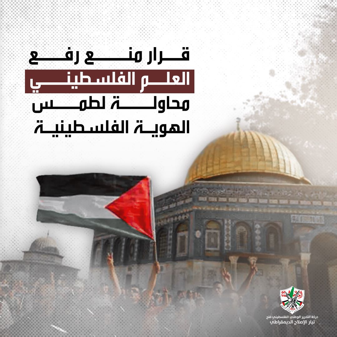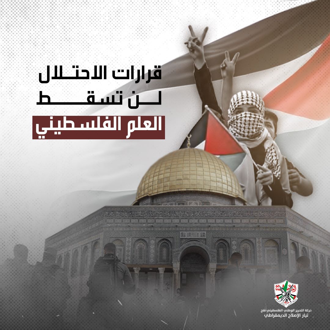 أطلق تيار الإصلاح الديمقراطي في حركة فتح اليوم حملة إلكترونية، رفضاً لقرار الفاشي "بن غفير" الذي يقضي بمنع رفع علم فلسطين داخل الأراضي المحتلة عام 1948.