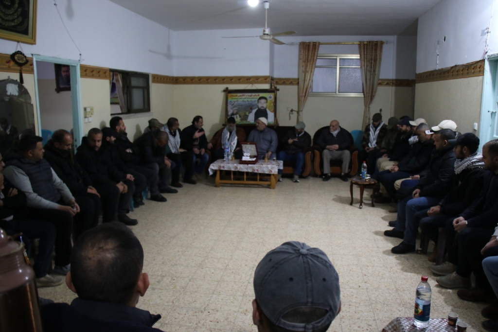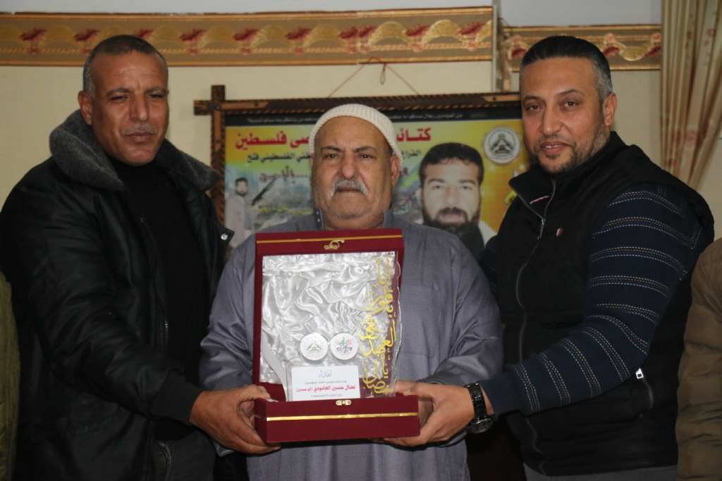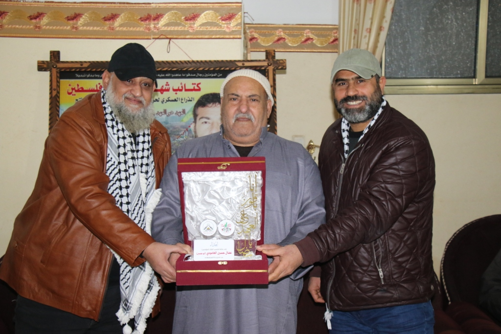 جاء ذلك في زيارة نفذتها قيادة الكتائب ممثلةً بالقائد العام أبو محمد، وقائد هيئة الأركان أبو أحمد، لمنزل عائلة الشهيد القائد «أبا حسين»، الذي اغتالته طائرات العدو الصهيوني المجرم أثناء تخطيطه لعملية فدائية جرى تنفيذها بعد اغتياله.