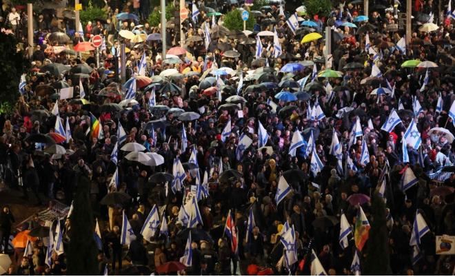 وفي القدس، تظاهر المئات أمام منزل الرئيس الإسرائيلي يتسحاق هرتسوغ، ورفعوا لافتات وأطلقوا هتافات ضد حكومة نتنياهو.