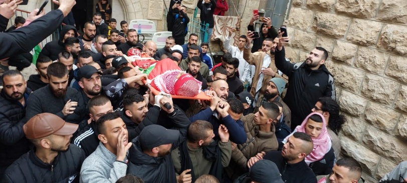 وانطلق موكب التشييع من أمام مستشفى بيت جالا الحكومي باتجاه منزل والد الشهيد، لإلقاء نظرة الوداع الأخيرة على جثمانه.