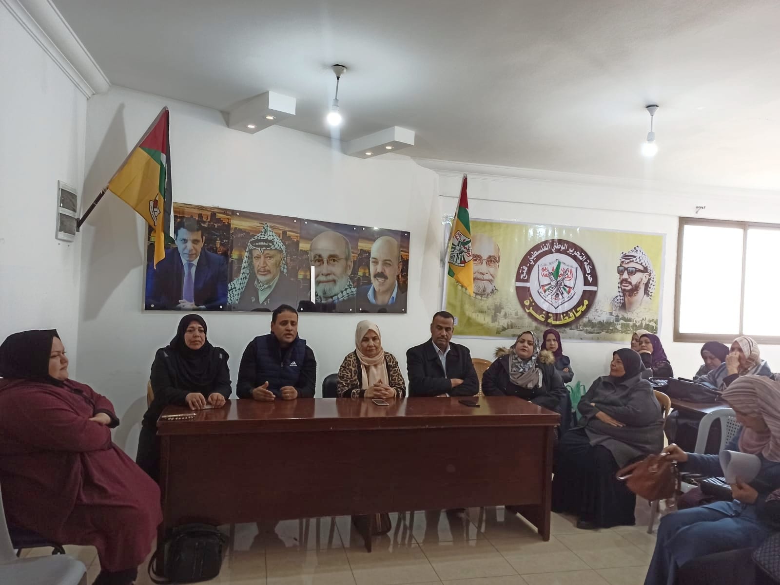 وذلك بحضور الاخت سعاد حجو أمين سر اللجنة بساحة غزة والاخ إبراهيم السلوت نائب أمين سر المحافظة والأخ محمد جربوع أمين سر مفوضية الإعلام بالمحافظة والأخت رضا العبدالله أمين سر مجلس المرأة بالمحافظة والأخت جميلة دلول منسقة ملف لجنة المصلحات بمجلس المرأة بالمحافظة.