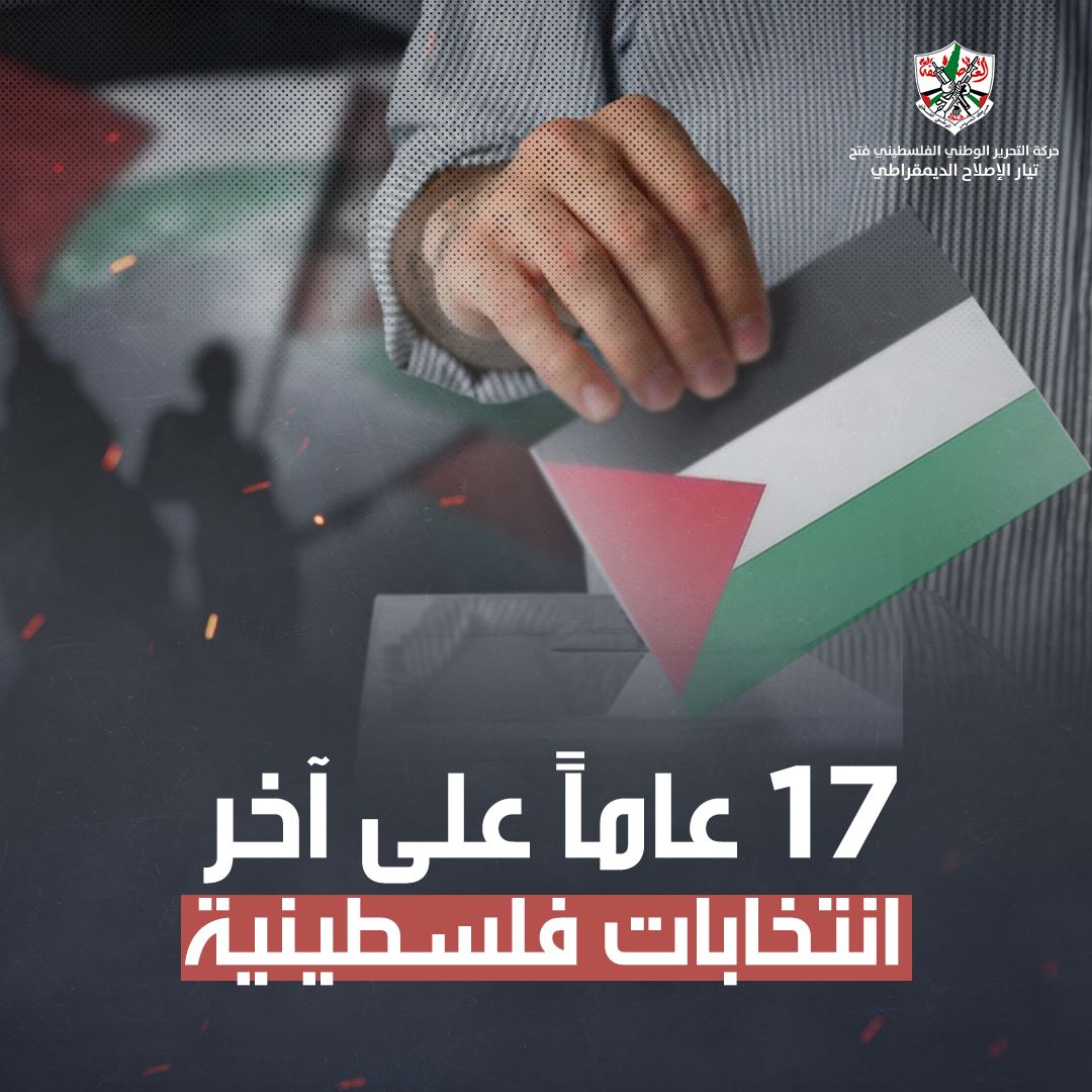 أطلق تيار الإصلاح الديمقراطي في حركة فتح اليوم حملة إلكترونية، بمناسبة مرور 17 عاماً على آخر انتخابات أجريت في فلسطين، للتأكيد على ضرورة الاحتكام للديمقراطية، وإجراء الانتخابات العامة لتجديد شرعيات مؤسسات النظام السياسي الفلسطيني.