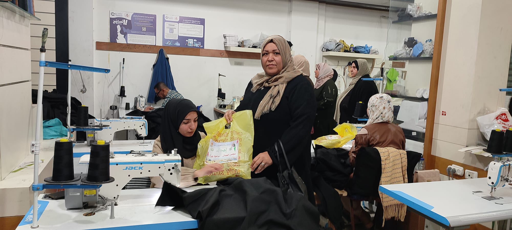 كرمت لجنة المرأة العاملة بمجلس العمال في محافظة غزة، اليوم السبت، العاملات في مشغل العشي للخياطة.