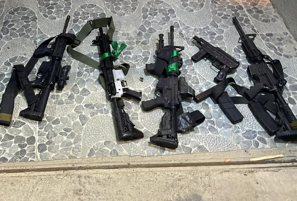ونشر الجيش الإسرائيلي صورة لبنادق المسلحين وعليها شعار حركة "حماس".