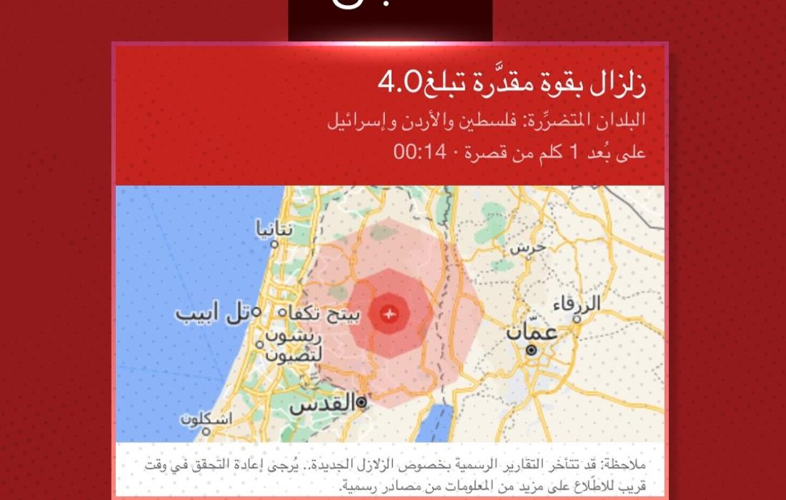 هزة أرضية تضرب شمال ووسط فلسطين