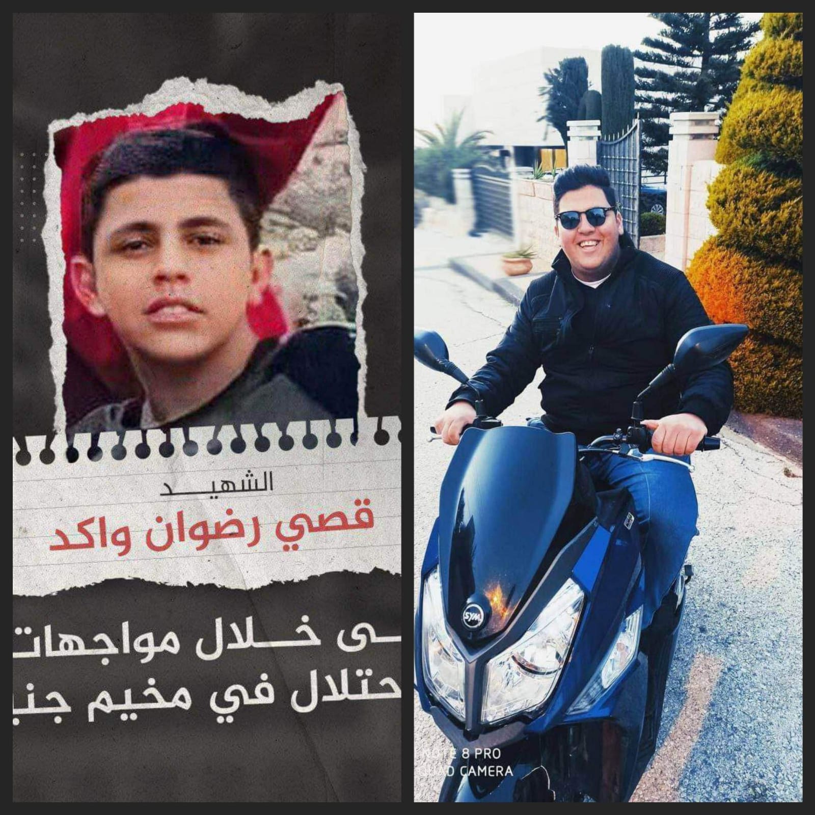 كما نعي الشهيد الطفل قصي رضوان واكد، 14عاما من قرية العرقة قضاء جنين ، والذي أستشهد مساء أمس الأحد الموافق 12/2/2023 متأثرا بإصابته في البطن برصاص جيش الاحتلال بعد إقتحامه لجنين ومخيمها ظهر أمس .