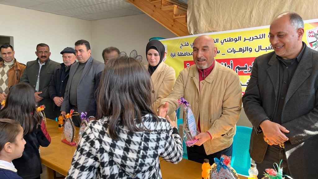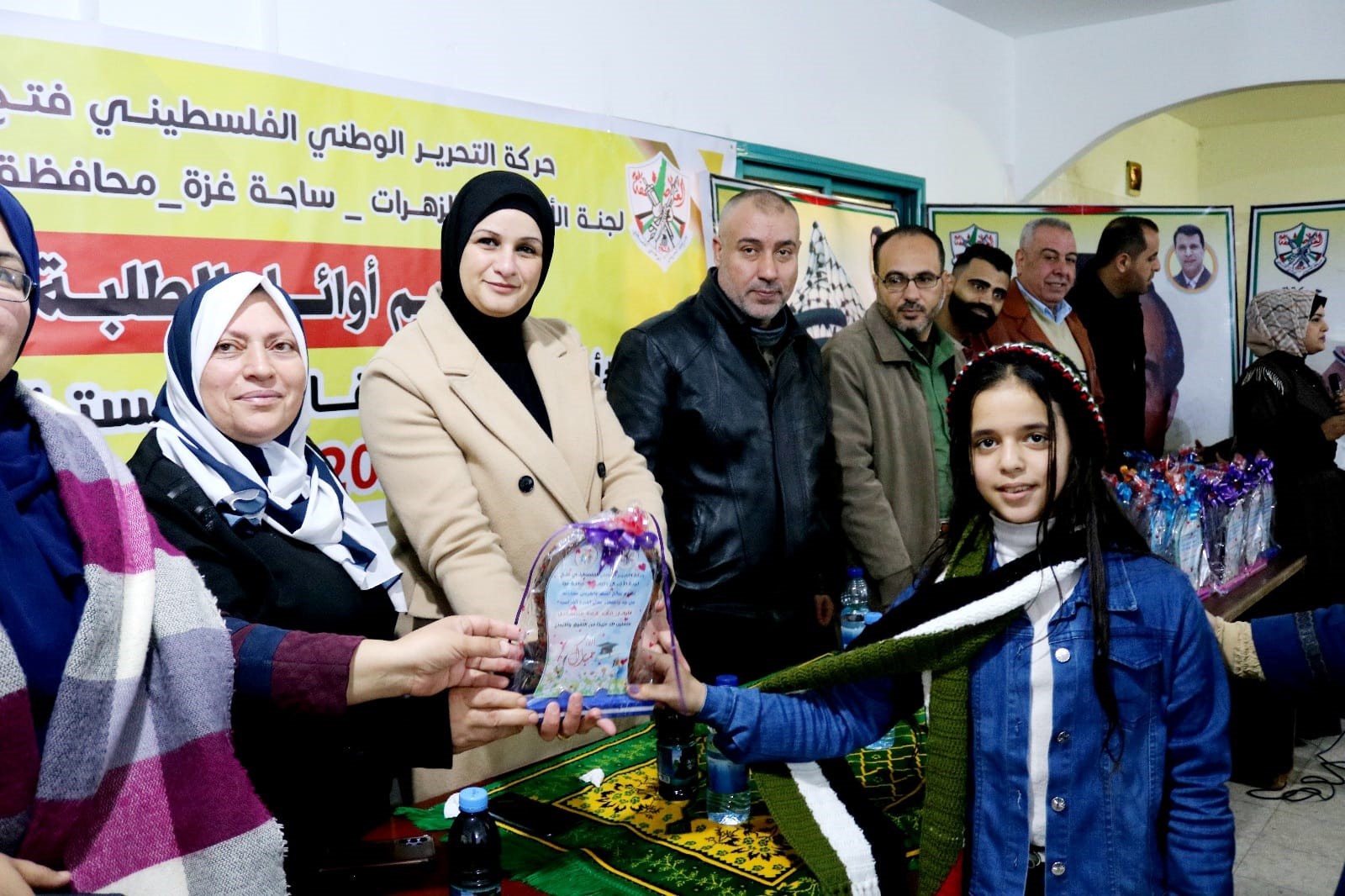 وفي ختام الحفل كرمت لجنة الأشبال والزهرات في حركة فتح بساحة غزة الطلبة المتفوقين، في محافظات القطاع.
