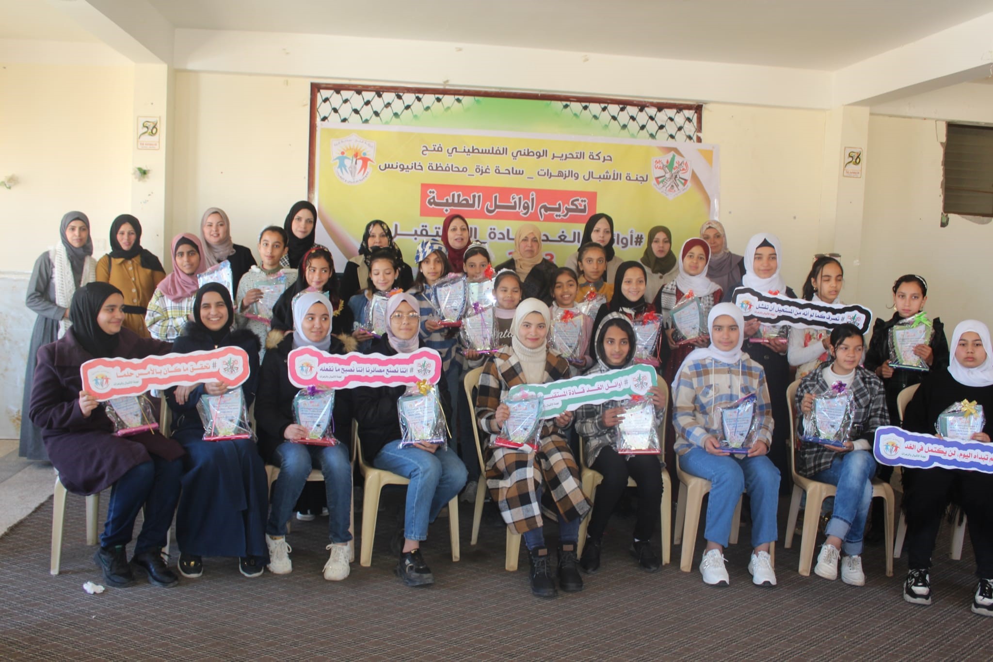 كرمت لجنة الأشبال والزهرات في حركة فتح بساحة غزة، اليوم السبت، الطلبة المتفوقين في الفصل الدراسي الأول بمدارس الحكومة والوكالة والخاصة، في محافظات قطاع غزة الخمسة.
