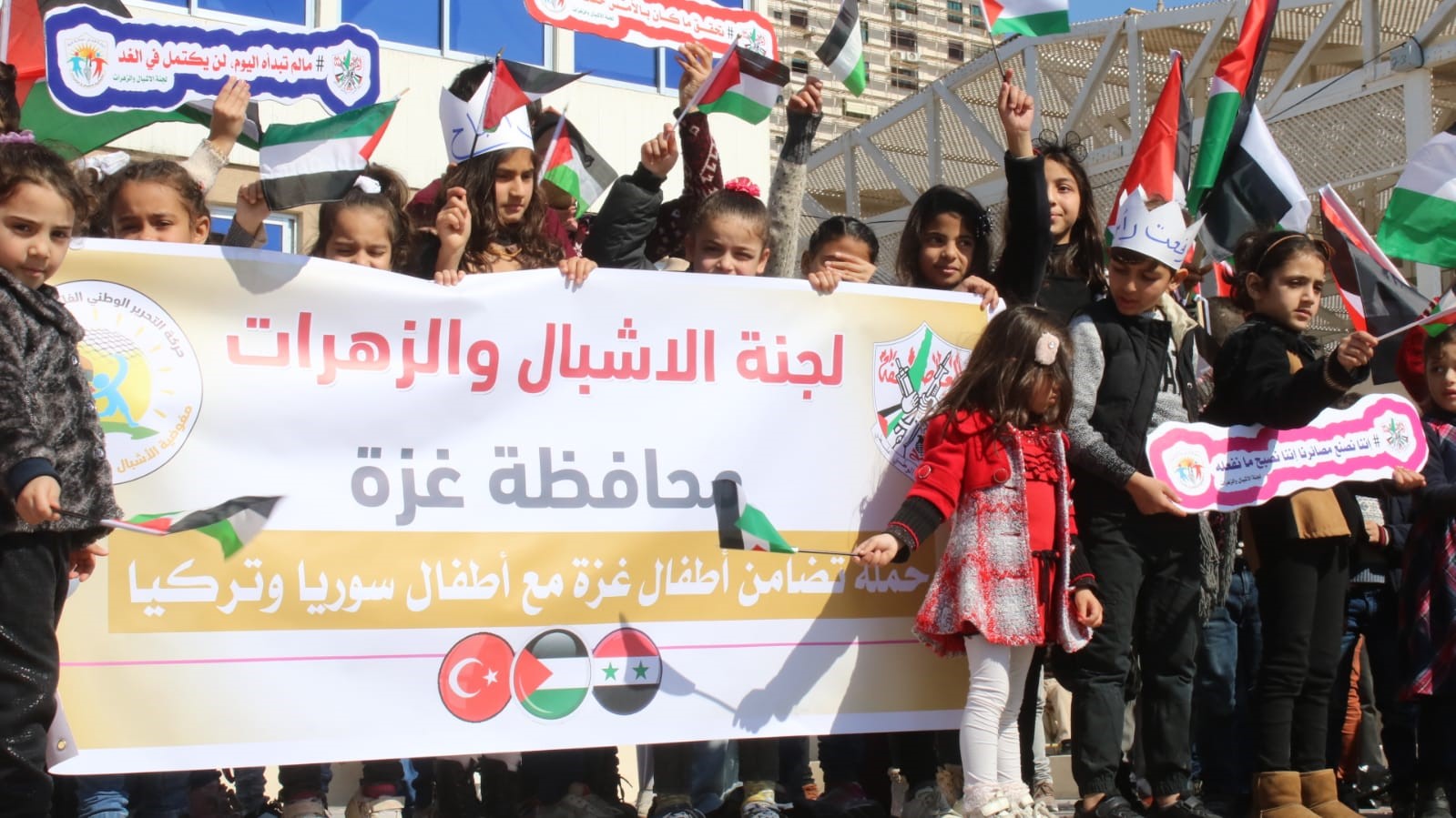 نظمت لجنة الأشبال والزهرات في حركة فتح بمحافظة غزة، وقفة تضامنية، مع الجرحي الأطفال المتضررين من الزلزال الذي ضرب سوريا وتركيا في السادس من فبراير/ شباط الجاري.