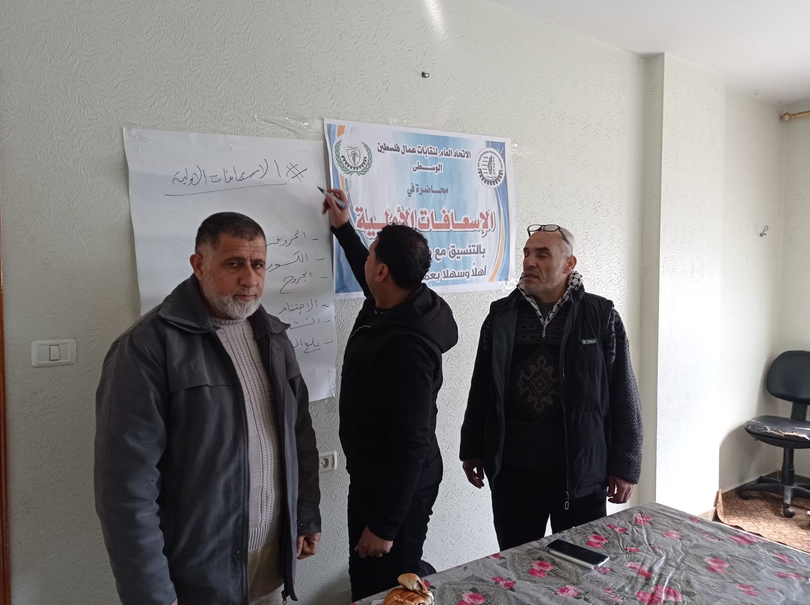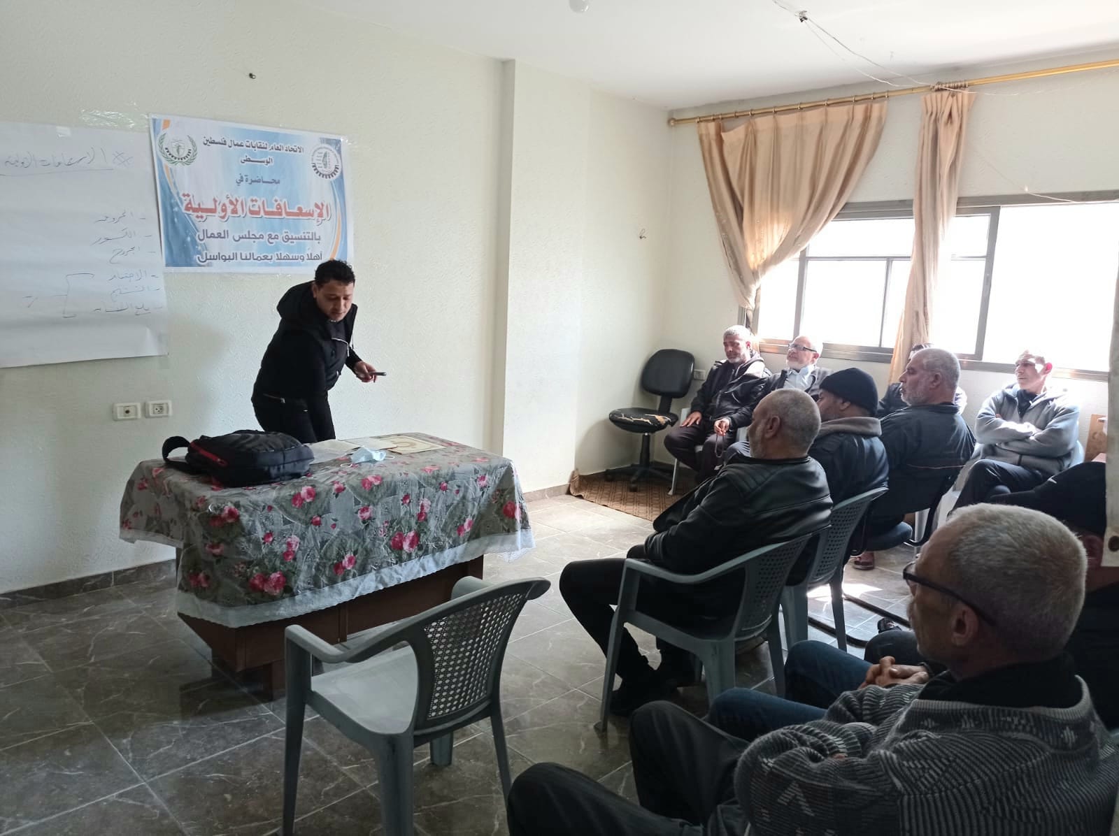 عقد مجلس العمال في محافظة الوسطى والإتحاد العام لنقابات العمال في قطاع غزة محاضرة في الاسعافات الأولية شارك بها مايقارب ال 20 عاملا.