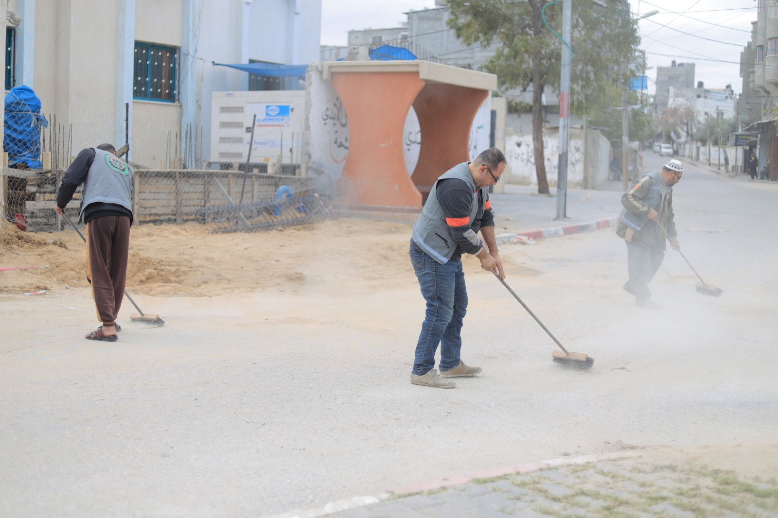 مجلس العمال بحركة فتح ينفذ يوما تطوعيا لتنظيف الشارع الرئيسي لمدخل مخيم المغازي