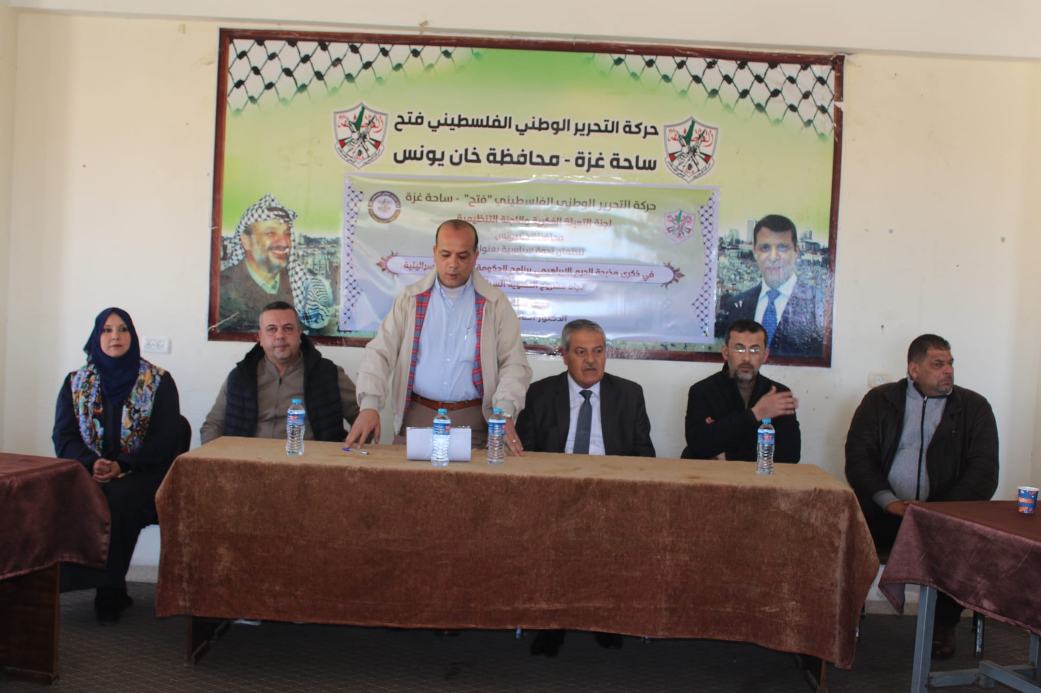 بدوره تحدث أمين سر هيئة محافظة خانيونس محمد الكوكبي عن أهمية تذكير شعبنا بأخطر وأهم الأحداث الوطنية، وتسليط الضوء على مفاصل الحياة السياسية والوطنية؛ لرسم خارطة الطريق الفلسطينية استنادًا على الوقائع ومستجدات التطورات السياسية.