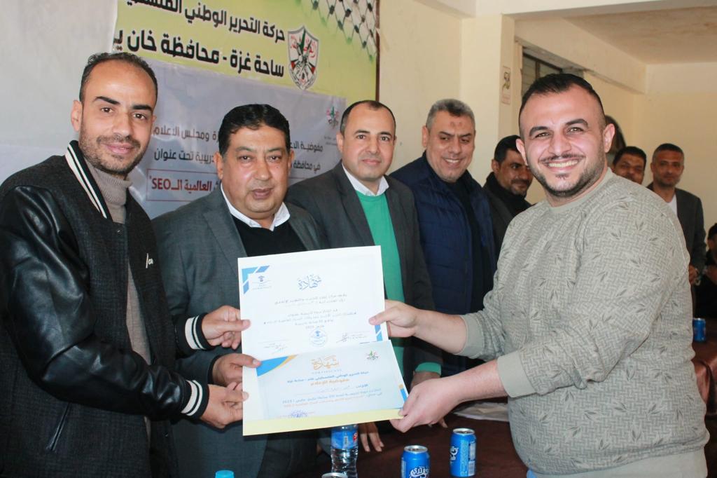 مفوضية الإعلام بحركة فتح تختتم دورة تدريبية بعنوان "تقنيات تحرير الأخبار ومحركات البحث العالمية SEO" بمحافظة خان يونس