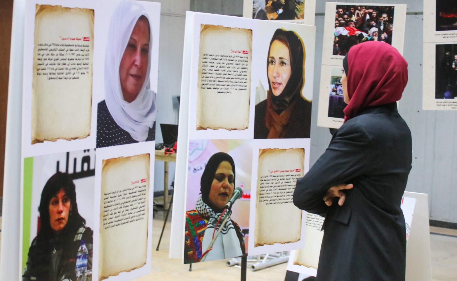 وتم تقسيم المعرض، إلى ثلاثة زوايا، زاوية الاستشهاديات، وزاوية المرابطات في القدس، وزاوية الرائدات في مختلف المجالات والتخصصات، تقديراً لمن بذلن دمهن وحريتهن من أجل القضية الوطنية في مواجهة الاحتلال، وإجلالاً لمن وهبن حياتهن دفاعاً عن حمى المقدسات، وعرفاناً لكل اللواتي سلكن طريق العلم والثقافة والأدب والمجتمع والاقتصاد وغيرها من المجالات في خدمة شعبنا ومجتمعنا واسناداً لمشروعنا الوطني الكبير.