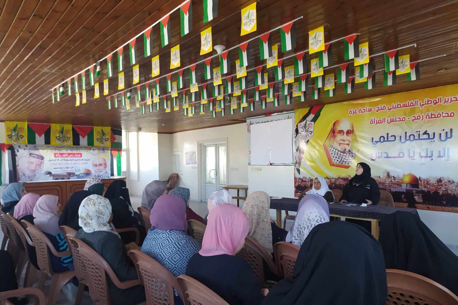 مجلس المرأة في حركة فتح بمحافظة رفح يعقد ورشة بعنوان " الممارسات الحسنة والأعمال الصالحة وأحكام الصيام فى شهر رمضان "