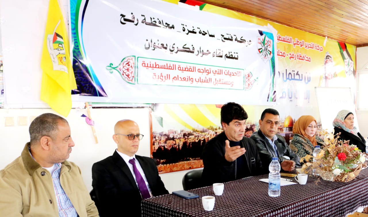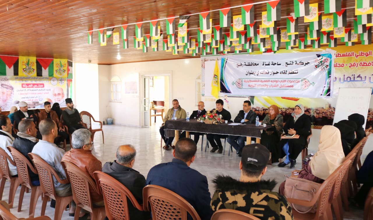 حركة فتح تنظم لقاءً حوارياً بعنوان "مستقبل الشباب الفلسطيني وسط استمرار حالة الانقسام وانعدام الرؤية السياسية" في محافظة رفح