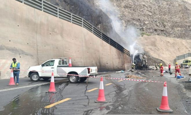 وذكرت مصادر محلية، أن سبب الحادث يعود إلى تهوية مكابح الحافلة ومن ثم اصطدامها بأحد الجسور وانقلابها واشتعال النيران بها .