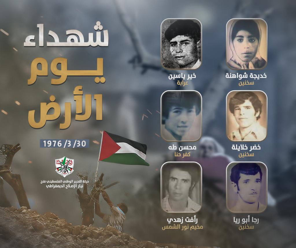ويحيي الشعب الفلسطيني ذكرى يوم الأرض في 30 أذار من كل عام، وتَعود أحداثه لعام 1976 بعد أن قامت السّلطات الصهيونية بمصادرة آلاف الدّونمات من الأراضي الفلسطينية.