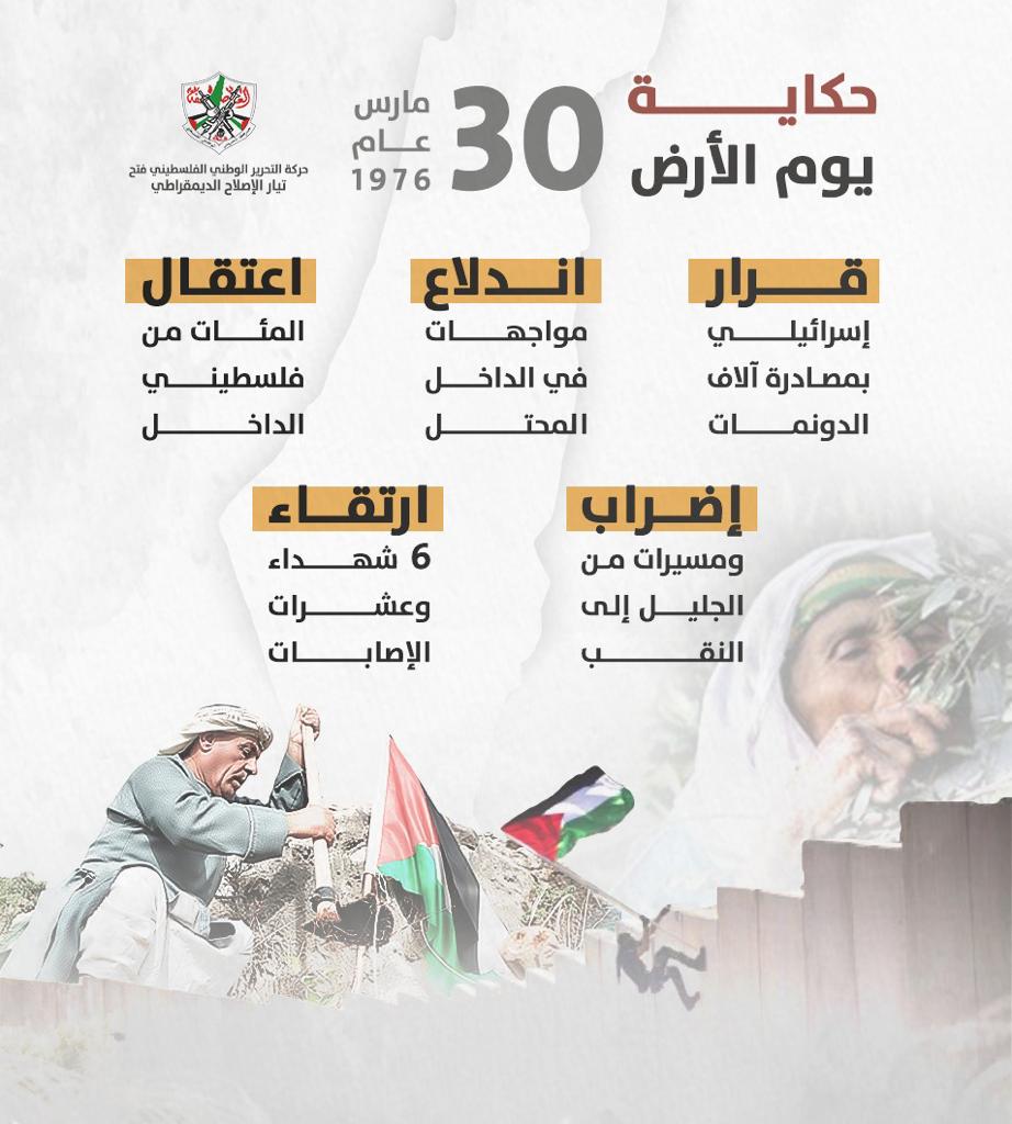 أطلق تيار الإصلاح الديمقراطي في حركة فتح، حملة الكترونية اليوم الخميس 30 آذار بمناسبة يوم الارض، والتي تعتبر مناسبة وطنية وذكرى مهمة للشعب الفلسطيني.