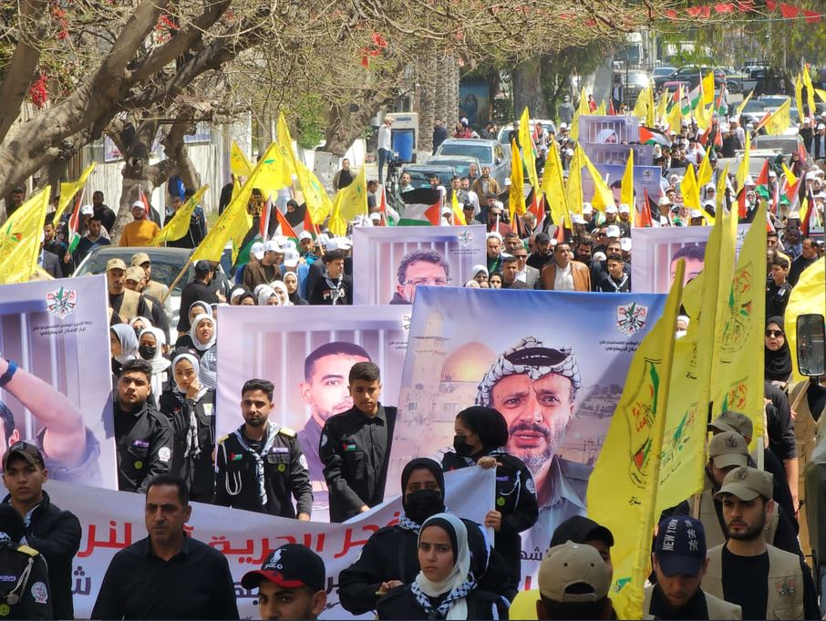 فيديو: رسالة حركة فتح بساحة غزة خلال مسيراً جماهيرياً نظمته دعماً للأسـرى في يوم الأسـير الفلسـطيني