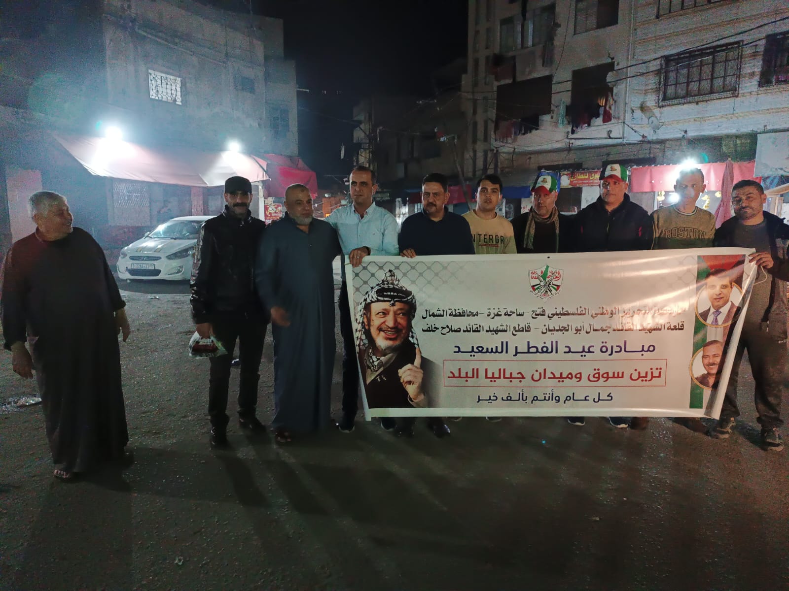 أطلقت حركة فتح بمحافظة الشمال، قلعة الشهيد القائد جمال أبو الجديان، بقاطع الشهيد صلاح خلف، مبادرة تزيين ميدان مدينة جباليا البلد بمناسبة حلول عيد الفطر السعيد.