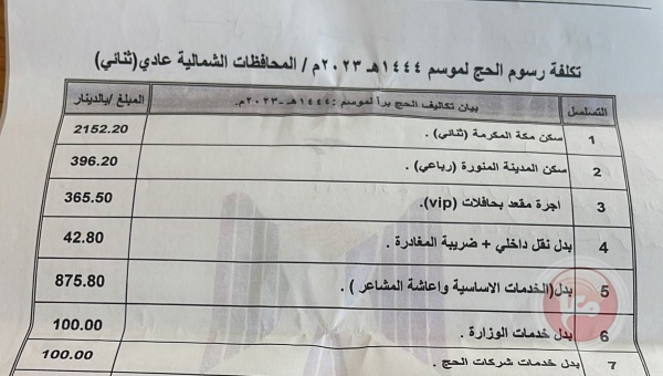 اثارت رسوم الحج لهذا العام والتي ارتفعت الى 3246 دينارا اردينا بعد أن كانت 2787 العام الماضي الجدل لدى الفلسطينيين على مواقع التواصل الاجتماعي.