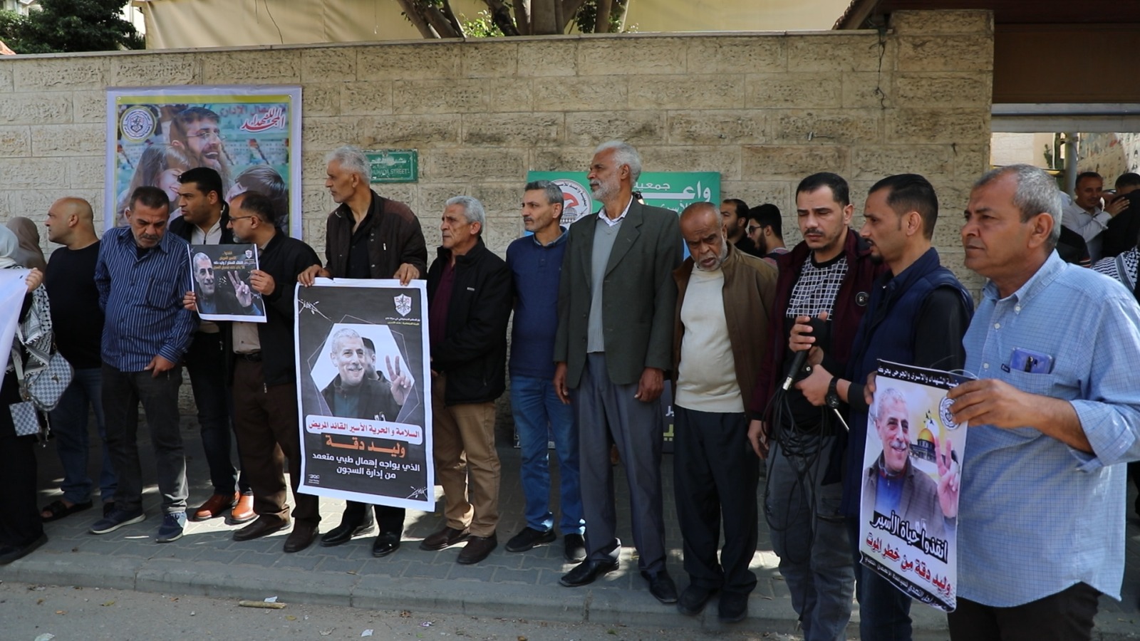 وكانت وقفة اليوم لدعم الأسير المريض وليد دقة وتزامنا مع إطلاق حملة الإسناد للأسير دقه، التي دعا إليها اليوم الأسرى في سجن نفحة.