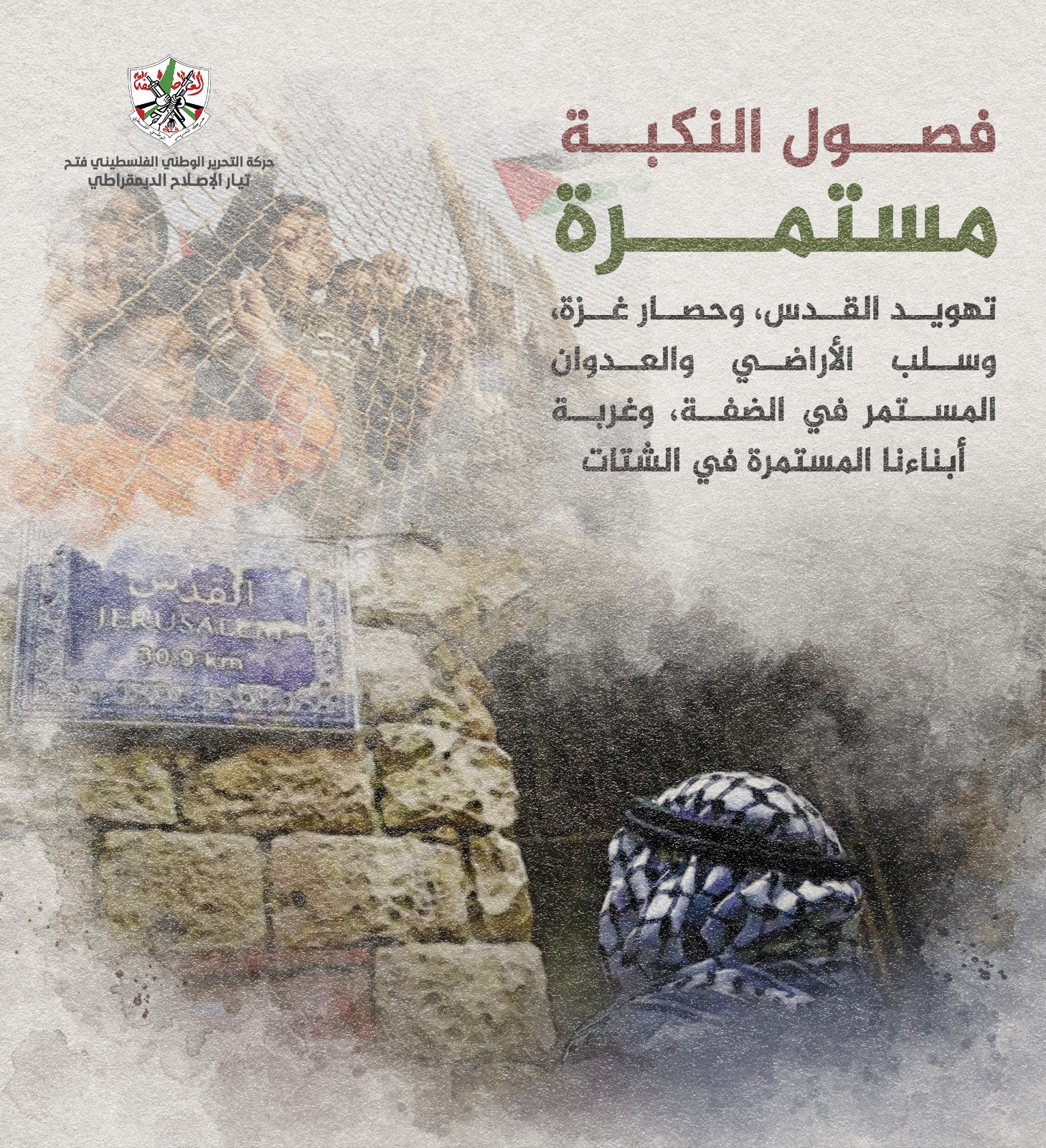 أطلق تيار الإصلاح الديمقراطي في حركة فتح، اليوم الاثنين، حملة إلكترونية عبر مواقع التواصل الاجتماعي، إحياءً لذكرى النكبة الفلسطينية، والمجازر التي ارتكبها الاحتلال الإسرائيلي بحق الفلسطينيين عام 1948.