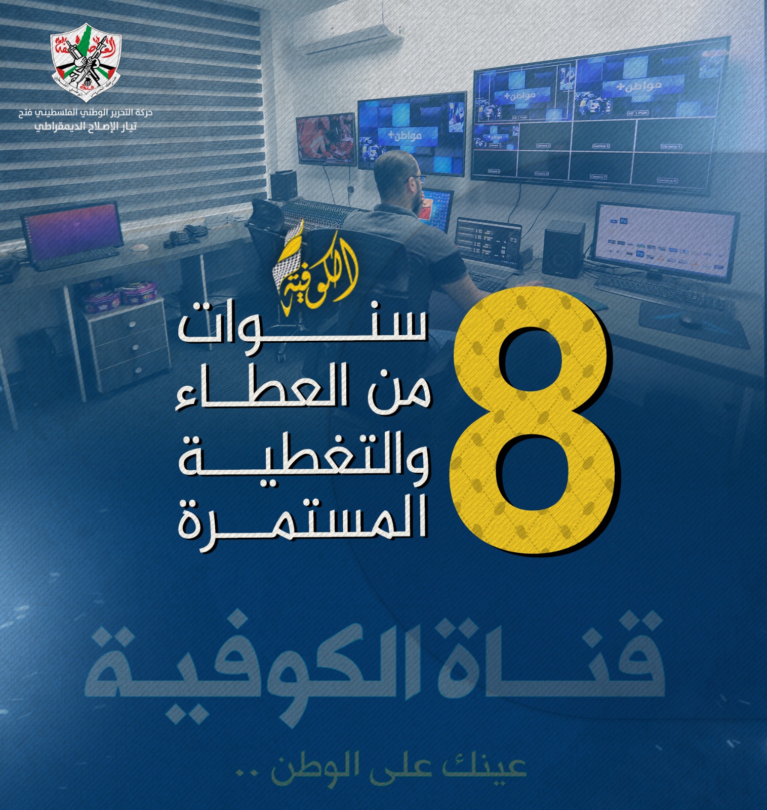 أطلق تيار الإصلاح الديمقراطي في حركة فتح، اليوم الأربعاء، حملة إلكترونية عبر مواقع التواصل الاجتماعي، مناسبة مرور 8 سنوات على انطلاق قناة الكوفية الفضائية، وافتتاح المقر الجديد للقناة بمدينة غزة.