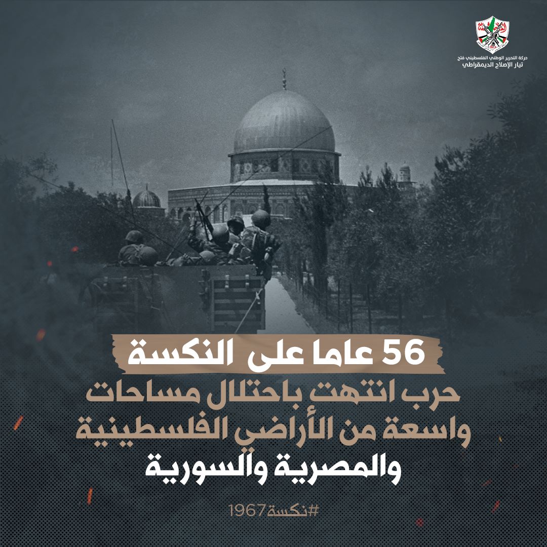 أطلق تيار الإصلاح الديمقراطي في حركة فتح، حملة الكترونية اليوم الاثنين، بمناسبة الذكرى ال 56 للنكسة حزيران عام 1967، والتي إحتلت فيها اسرائيل أجزاء واسعة من الأراضي العربية.