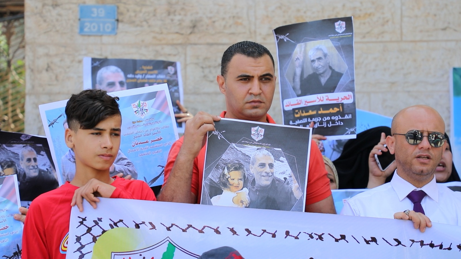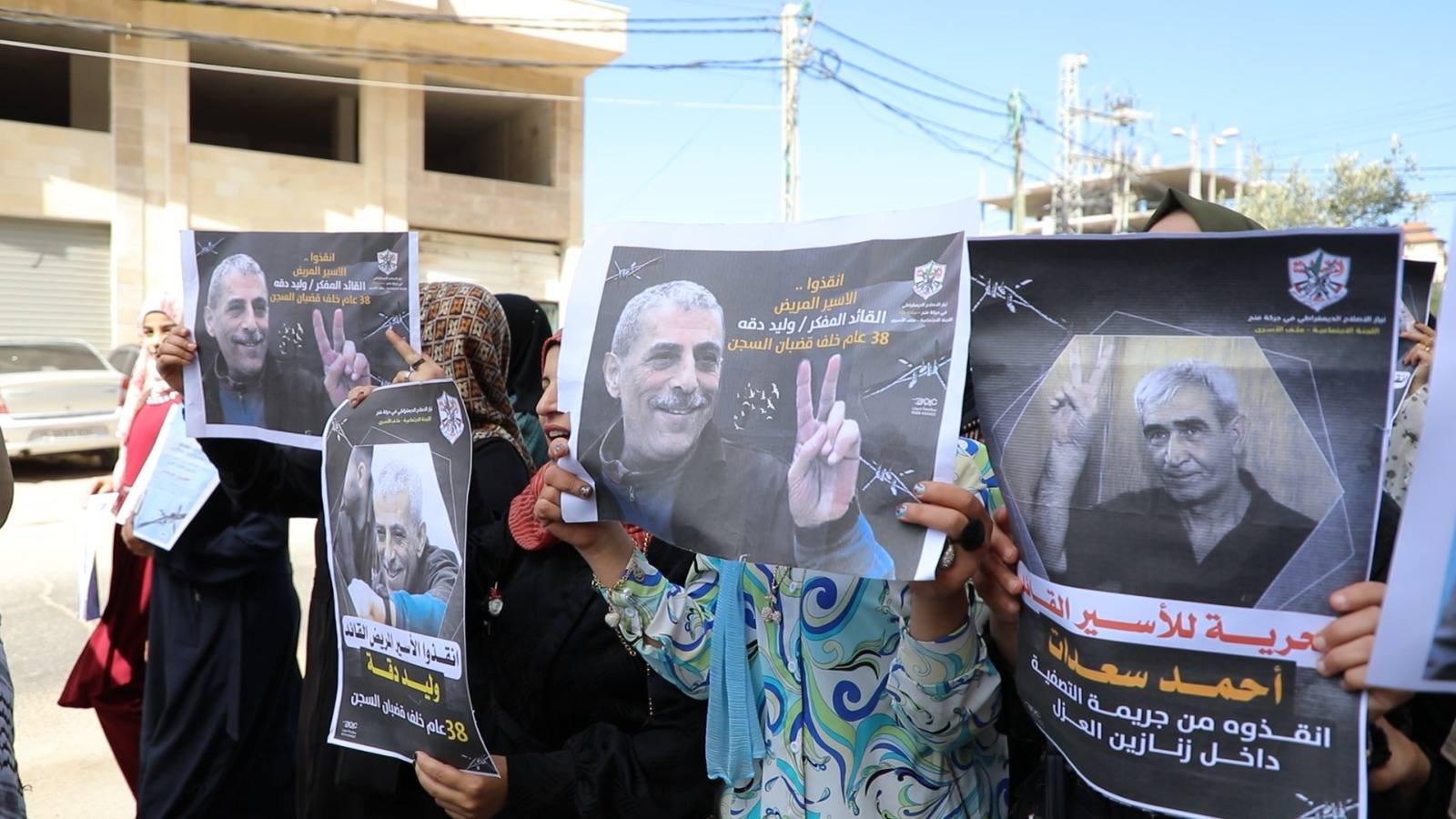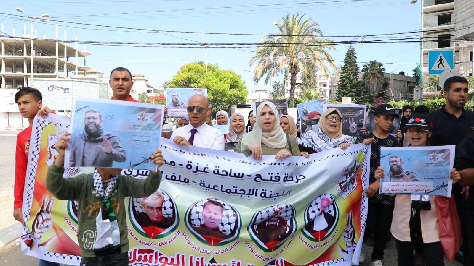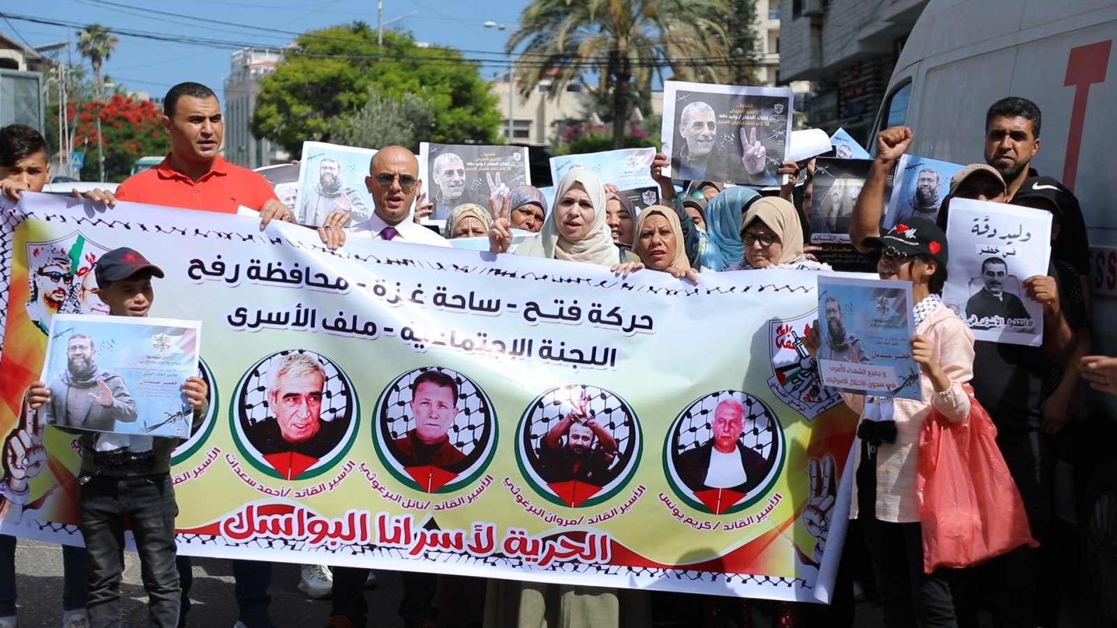 وحمل المشاركون صور للأسرى وهتفوا دعما لهم وتنديدا بإجراءات الاحتلال الإجرامية بحقهم وطالبوا المجتمع الدُّوَليّ بالتدخل لإنقاذهم من إجرام الاحتلال وسجانة.