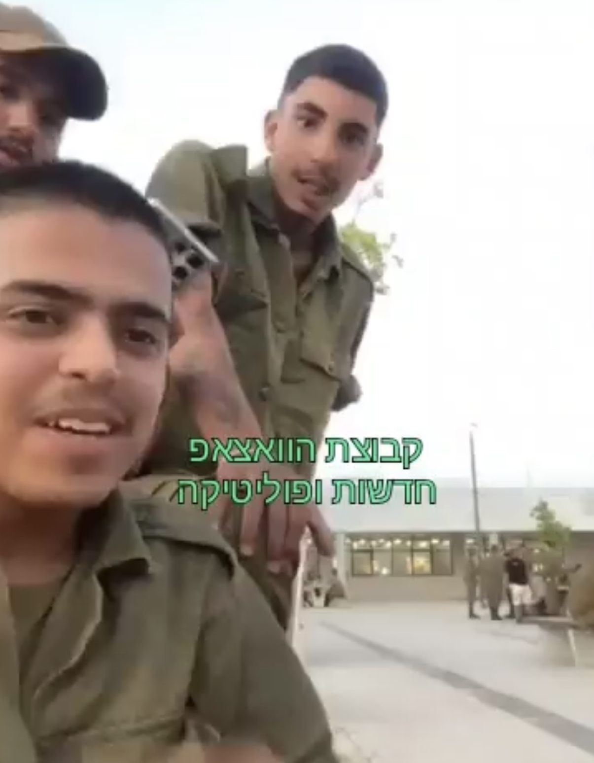 وكانت صرخاتهم "لنذهب جنين ، لنذهب إلى فلسطين".هؤلاء جنود من مركز النقل التابع لقسم التكنولوجيا واللوجستيات.وقد تم لفت انتباه القادة إلى القضية الذين استدعوا الجنود في هذه المرحلة لإجراء محادثة لتوضيح معنى وشدة أفعالهم.