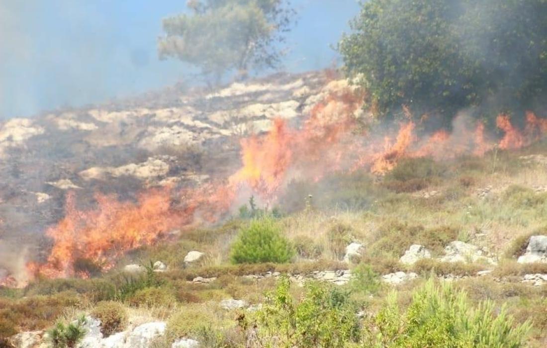 مستوطنون يشعلون النيران بأراضٍ زراعية في بلدة سعير