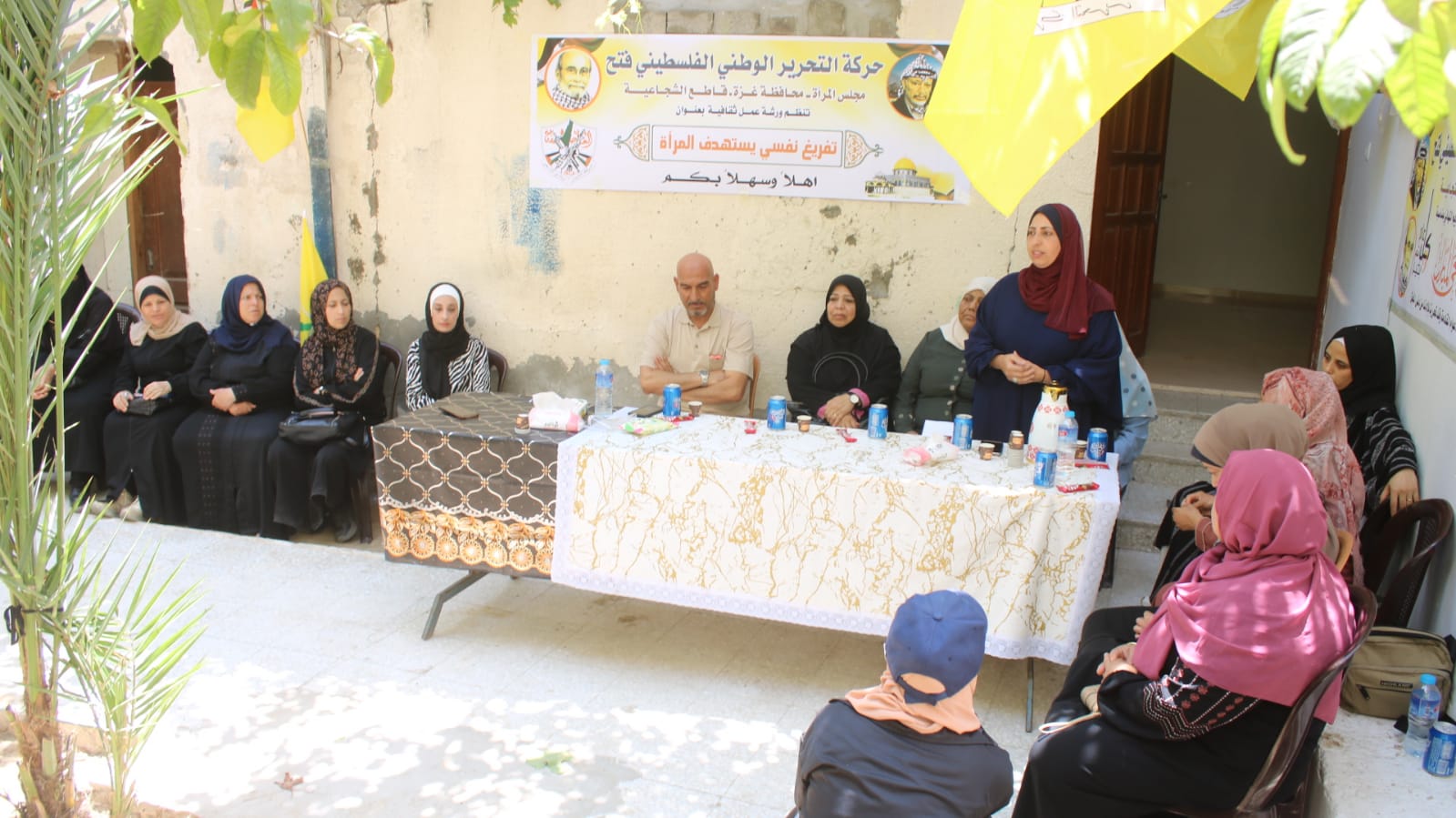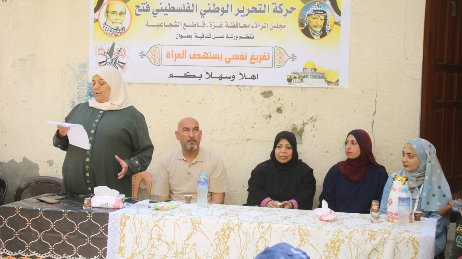 نفذ مجلس المرأة بحركة فتح في محافظة غزة ورشة توعوية بعنوان "التفريغ النفسي"، في قاطع الشجاعية.