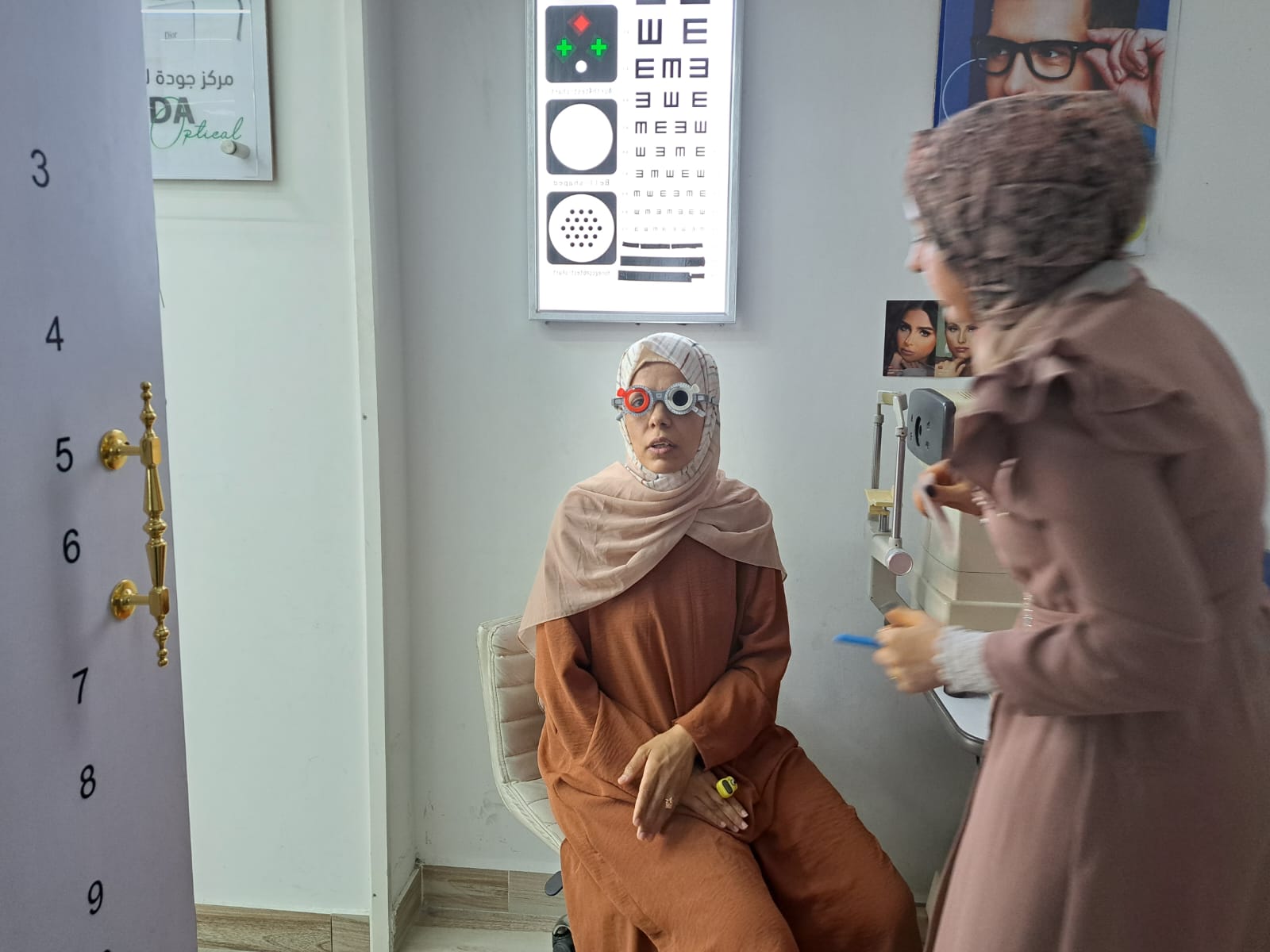 والتي تم خلالها عمل فحص نظر مجاني لعدد من فئة ذوي الاحتياجات الخاصة في مركز جودة للبصريات في محافظة رفح، مع عمل تخفيض على سعر النظارات الطبية.