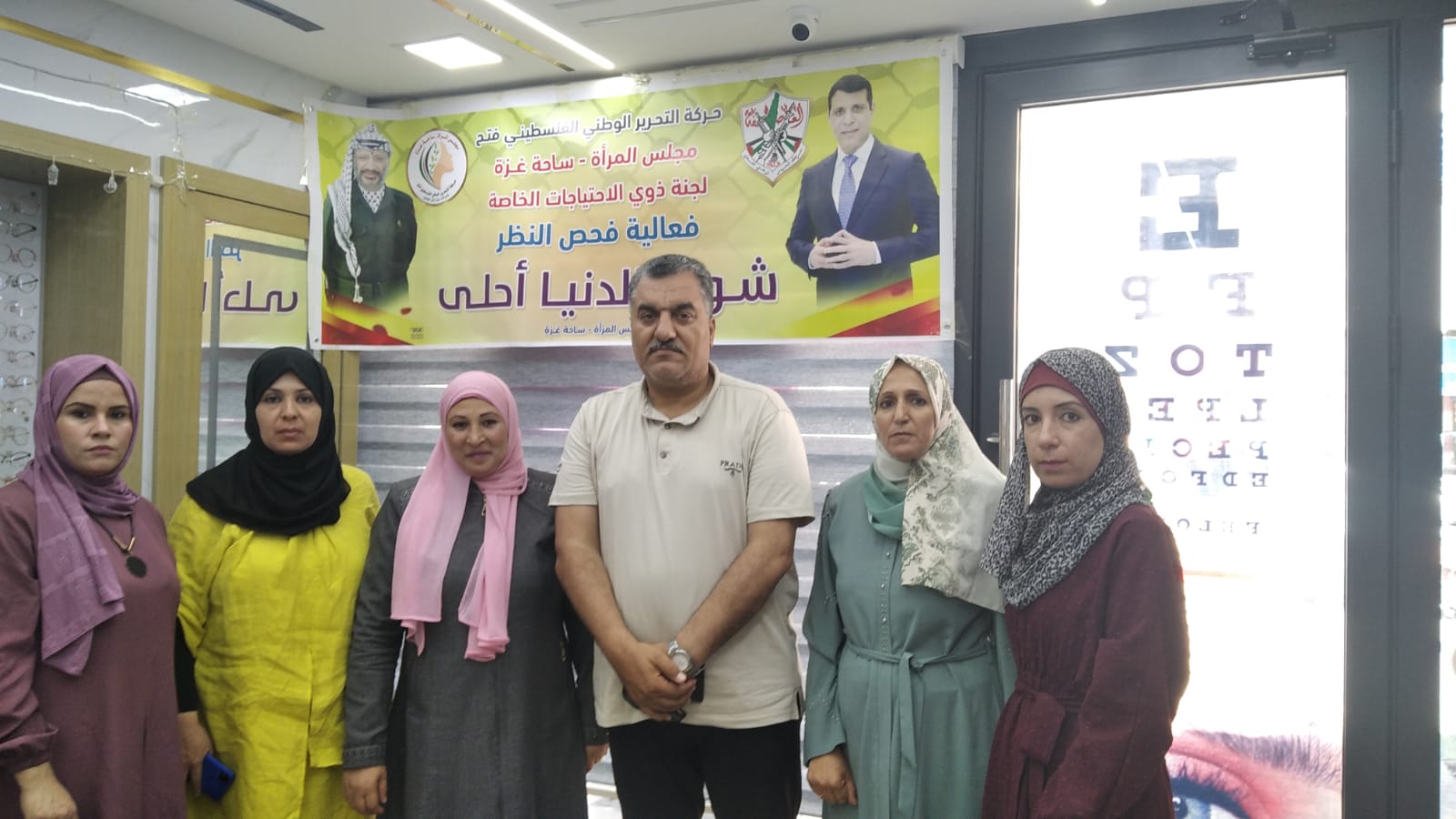 نفذ لجنة ذوي الإعاقة في مجلس المرأة بحركة فتح في ساحة غزة فعالية "شوف الدنيا أحلى" للفحص الطبى للنظر لعدد من ذوي الاعاقة مجاناُ، بمحافظة رفح، بحضور الأخوات والأخوة أعضاء هيئة المحافظة و أعضاء اللجنة في الساحة والمحافظة.