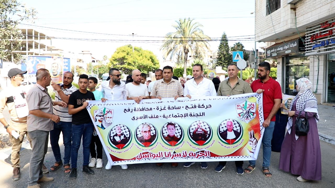 بالفيديو والصور.. حركة فتح بمحافظة رفح تُشارك في الوقفة التضامنية الأسبوعية مع أسرانا في سجون الاحتلال