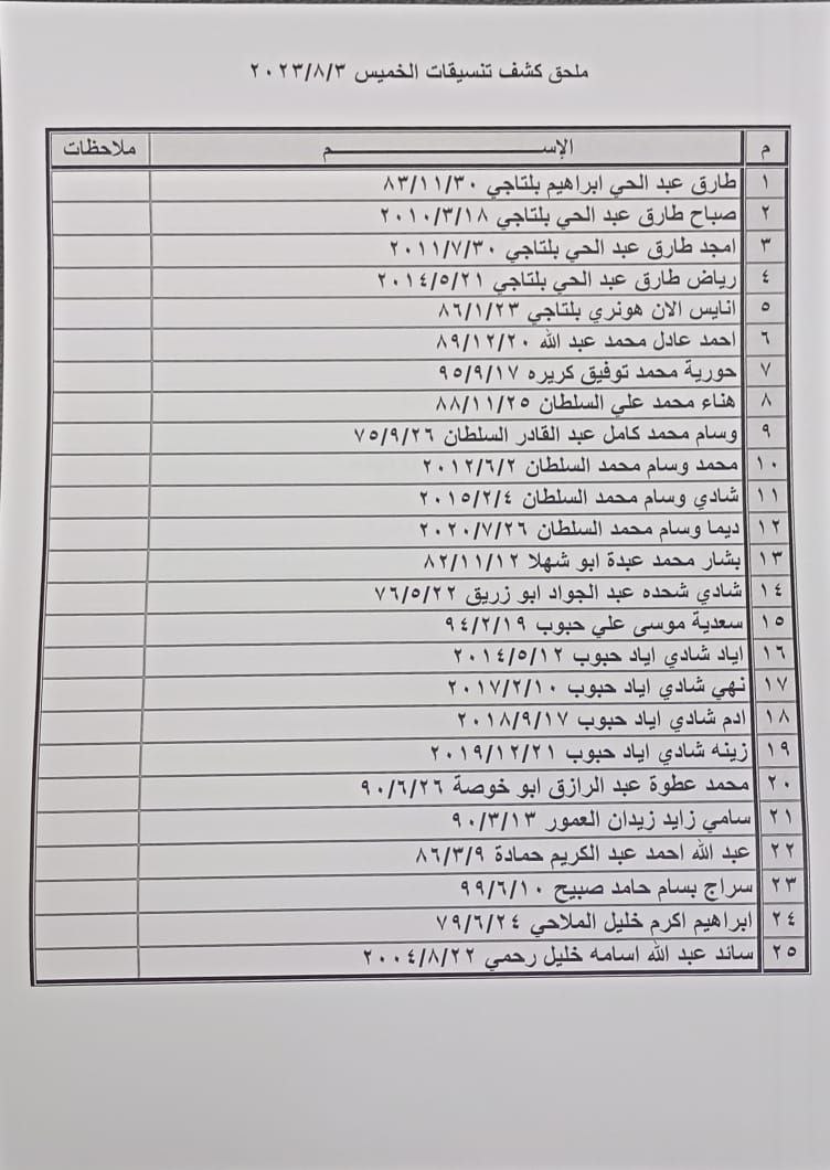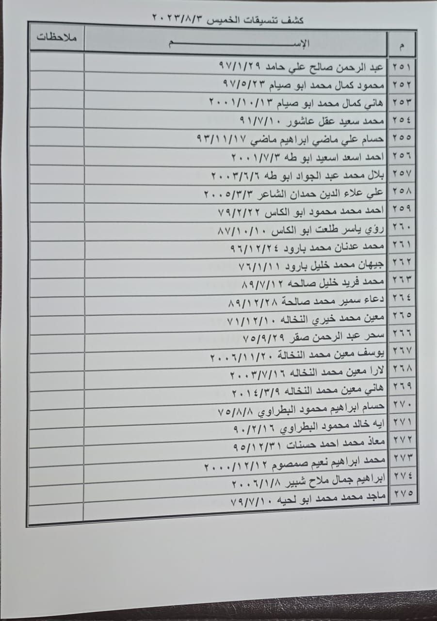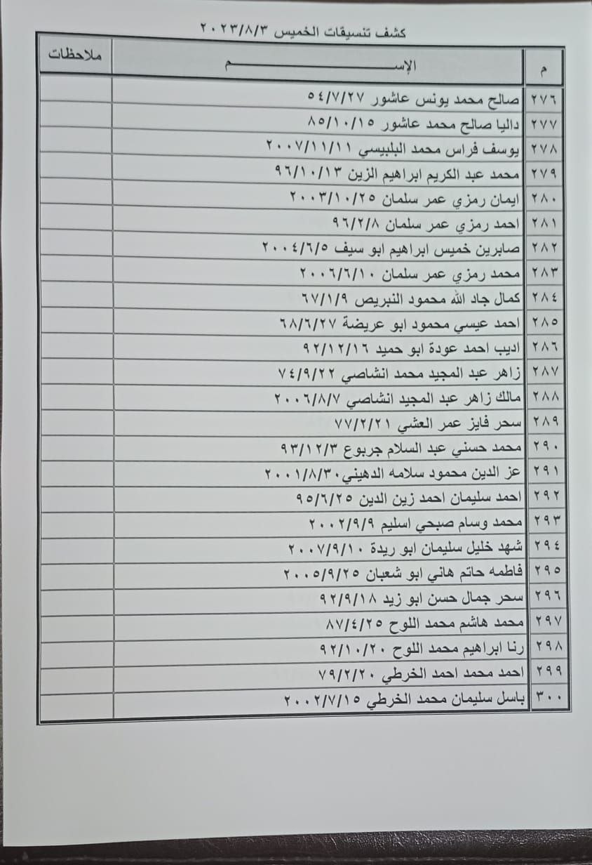 ونوهت الهيئة على الذين واردة أسمائهم بالكشف، عليهم التواجد س 7:00 صباحاً في الصالة الخارجية للمعبر لتسهيل سفرهم.