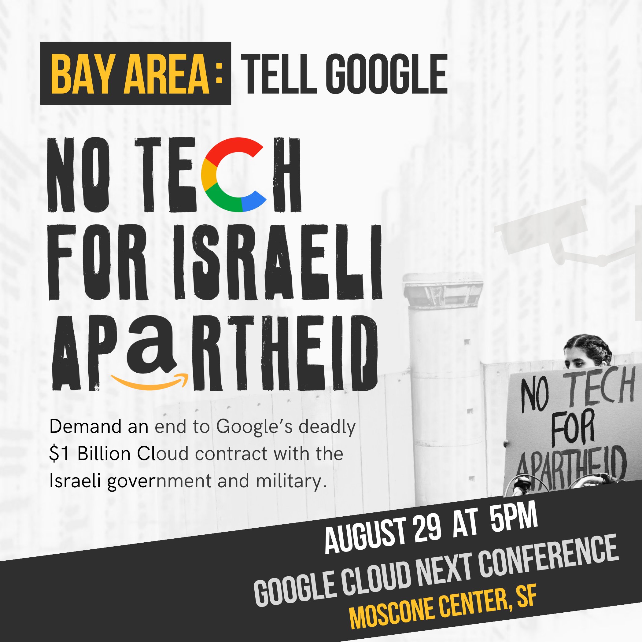 ونشر نشطاء بالتعاون مع مؤسسات اميركية دعوات عبر مواقع التواصل الاجتماعي لتنظيم تظاهرة ضخمة امام هذا المؤتمر الرئيسي للذكاء الصناعي، والذي يجذب الآلاف من العاملين في المجال التكنولوجي، للضغط على الشركتين (غوغل وامازون)، لإلغاء عقد مشروع (نيموس) الذي وقع قبل نحو عامين بقيمة مليار دولار مع حكومة الاحتلال، والذي يسعى لتمكين وترسيخ الفصل العنصري وعنف الاحتلال ضد الشعب الفلسطيني، والاستيلاء على الأراضي .