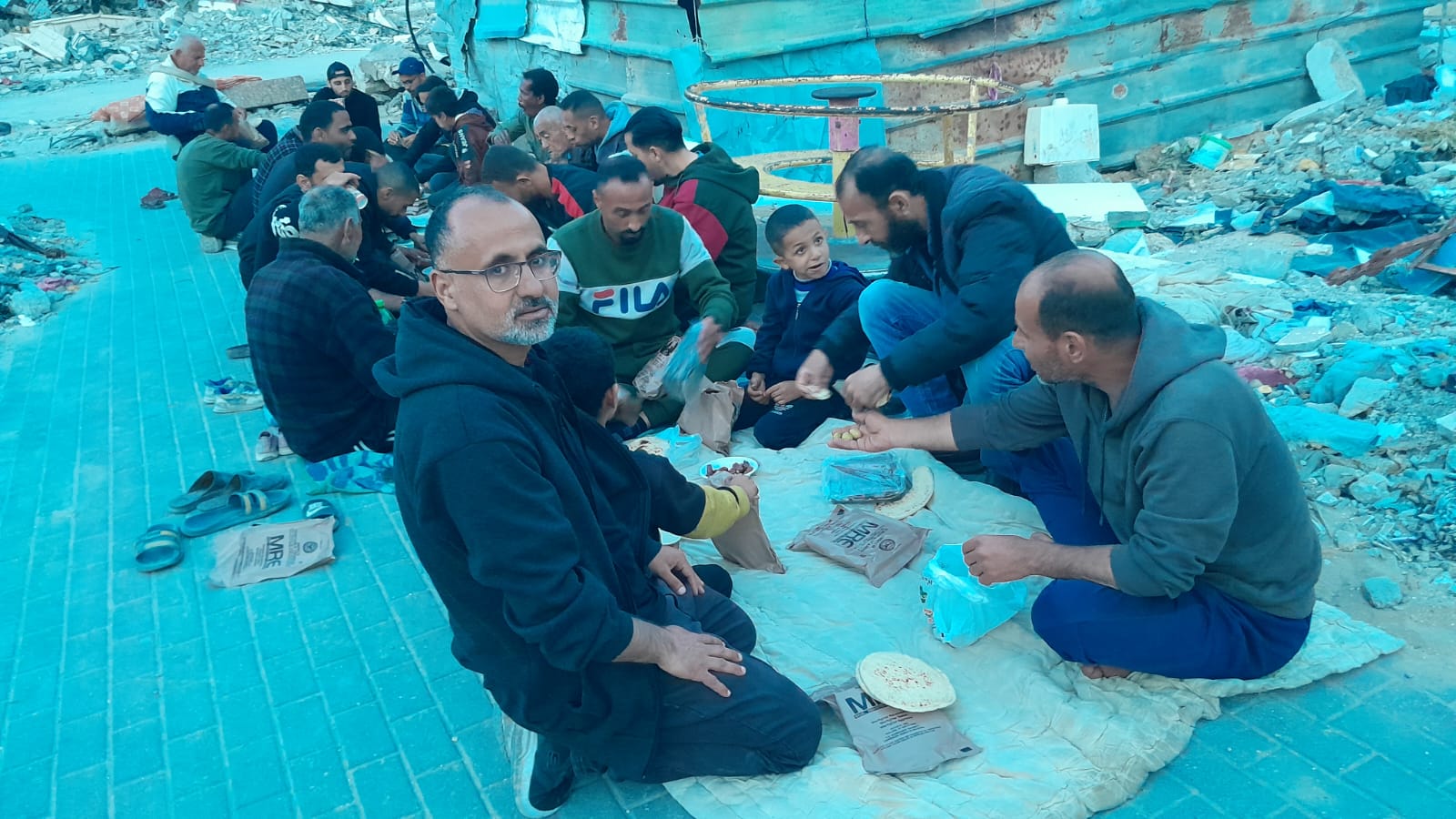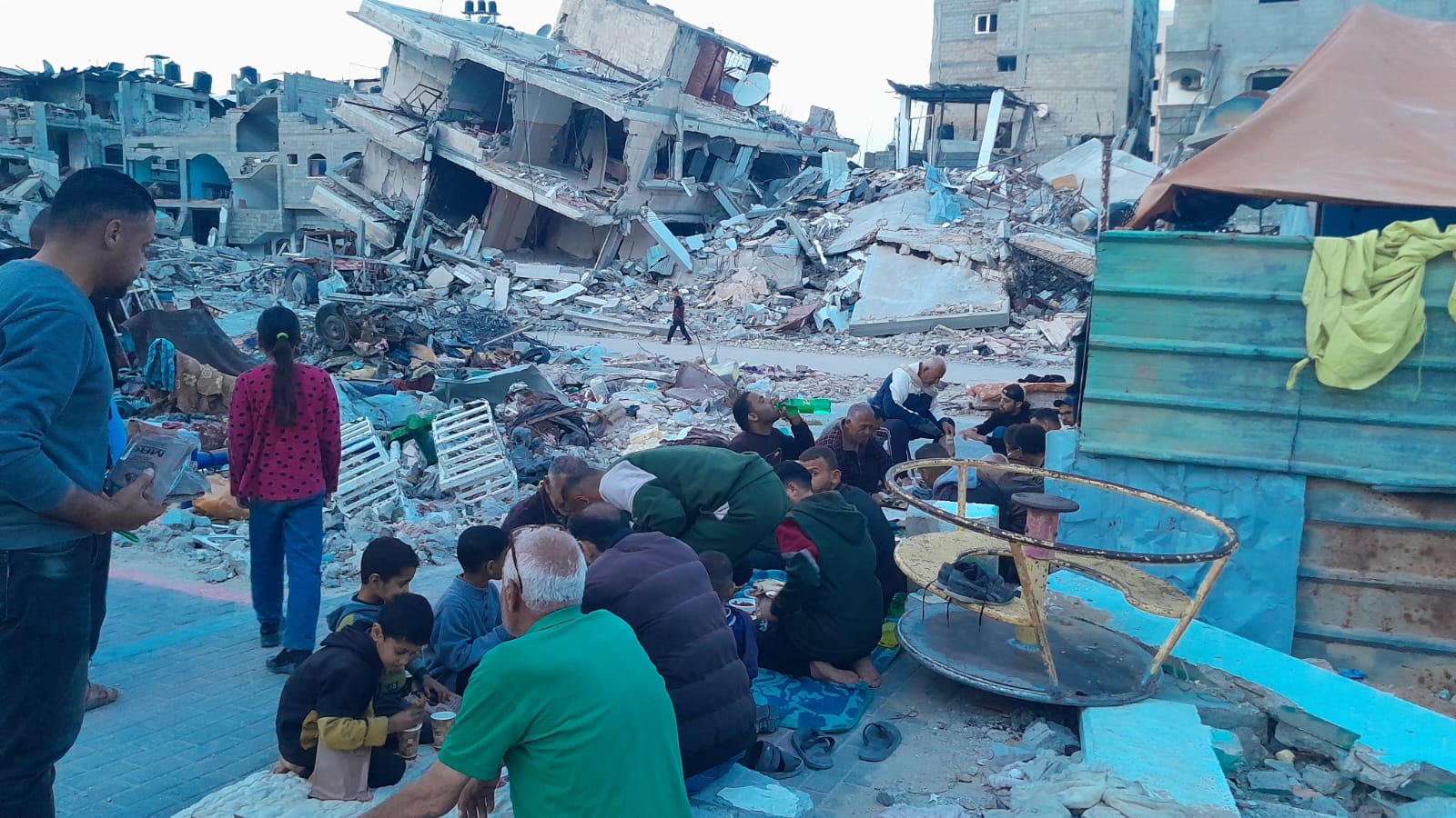 أقامت اللجنة الوطنية للشراكة والتنمية مائدة إفطار رمضانية فوق ركام عدد من البيوت المدمرة في شمال غزة.