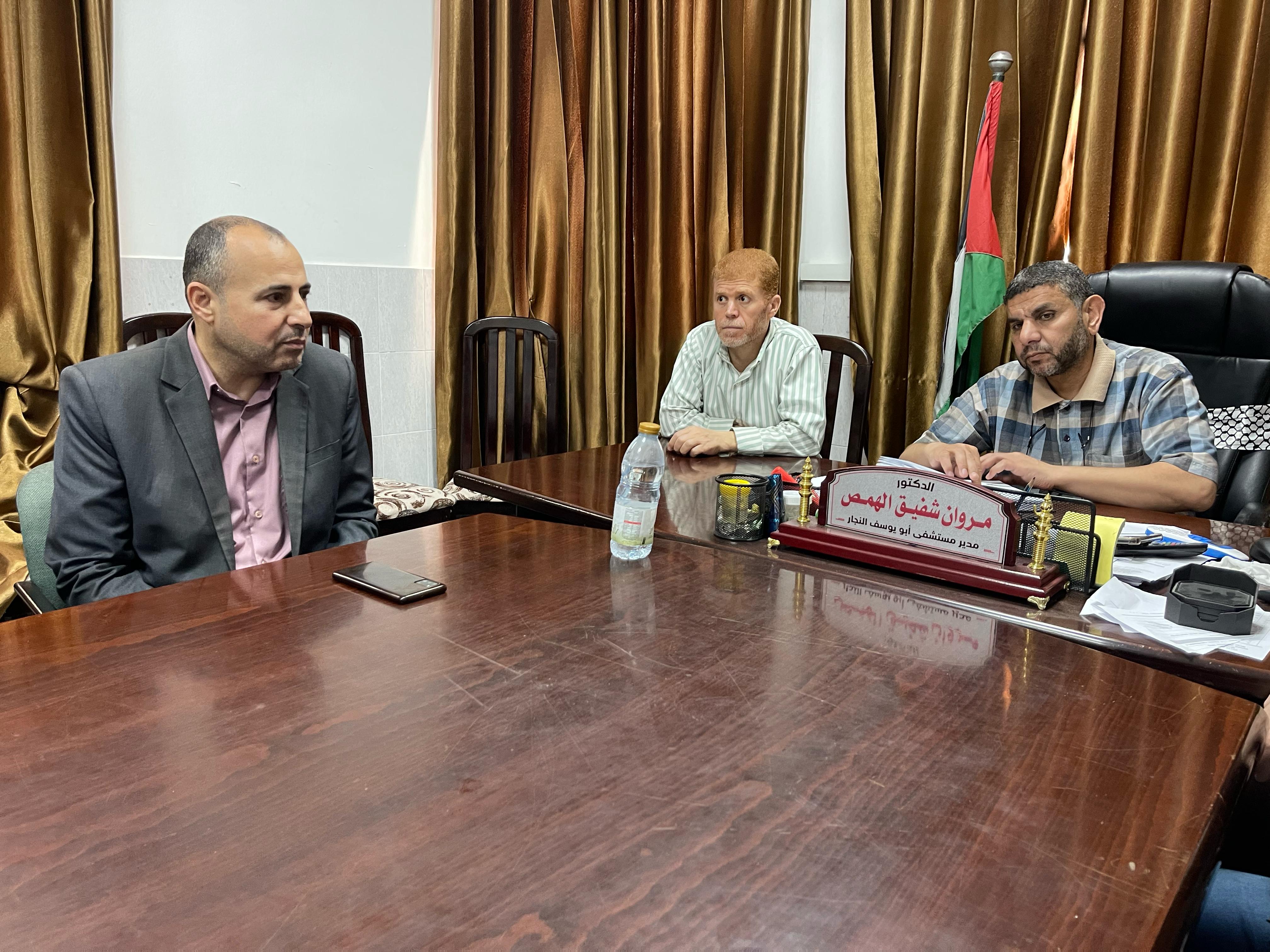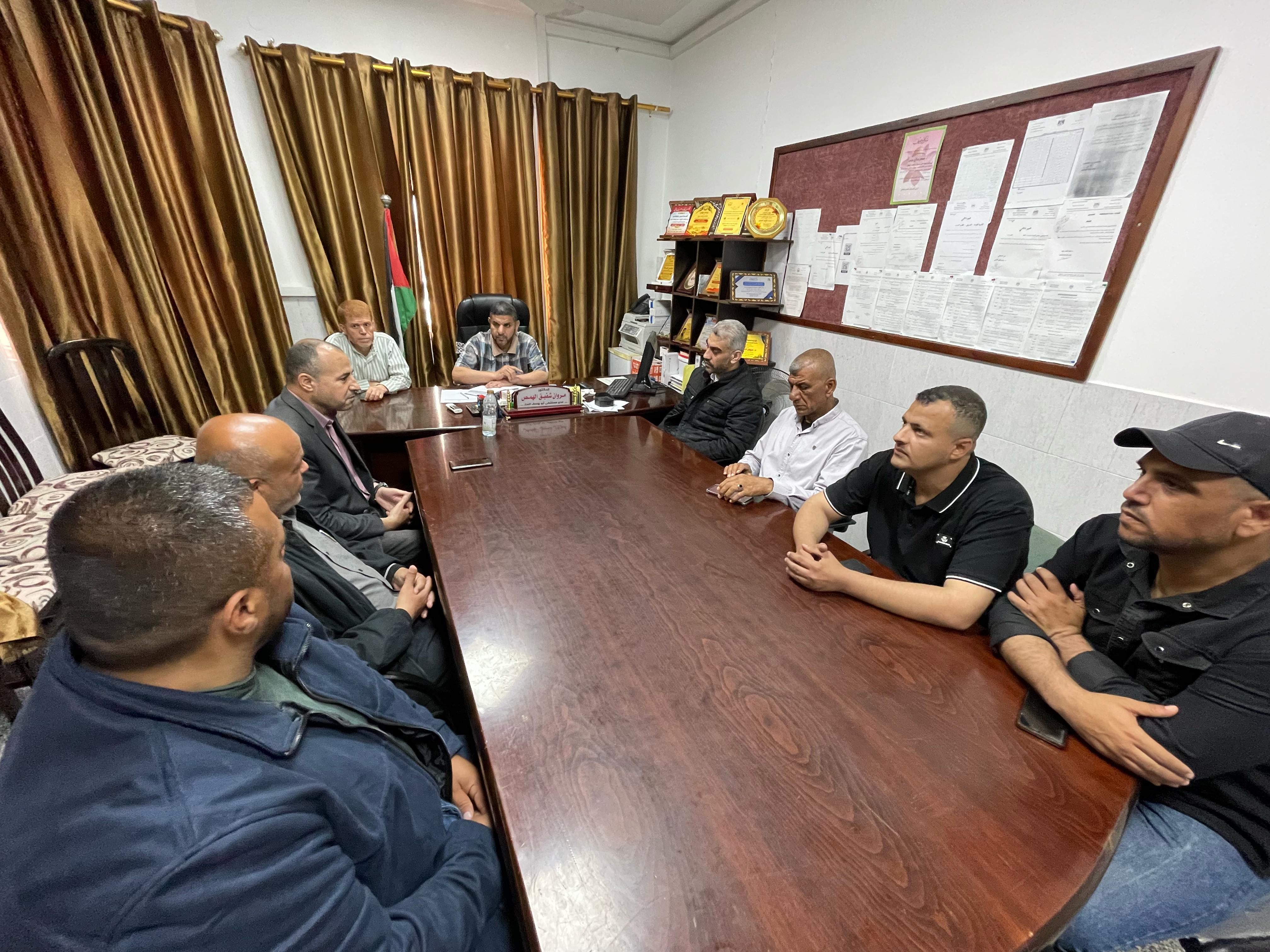 اللجنة الوطنية للشراكة والتنمية في محافظة رفح تلتقي إدارة مستشفى أبو يوسف النجار وتطلع على أحوال الطواقم الطبية