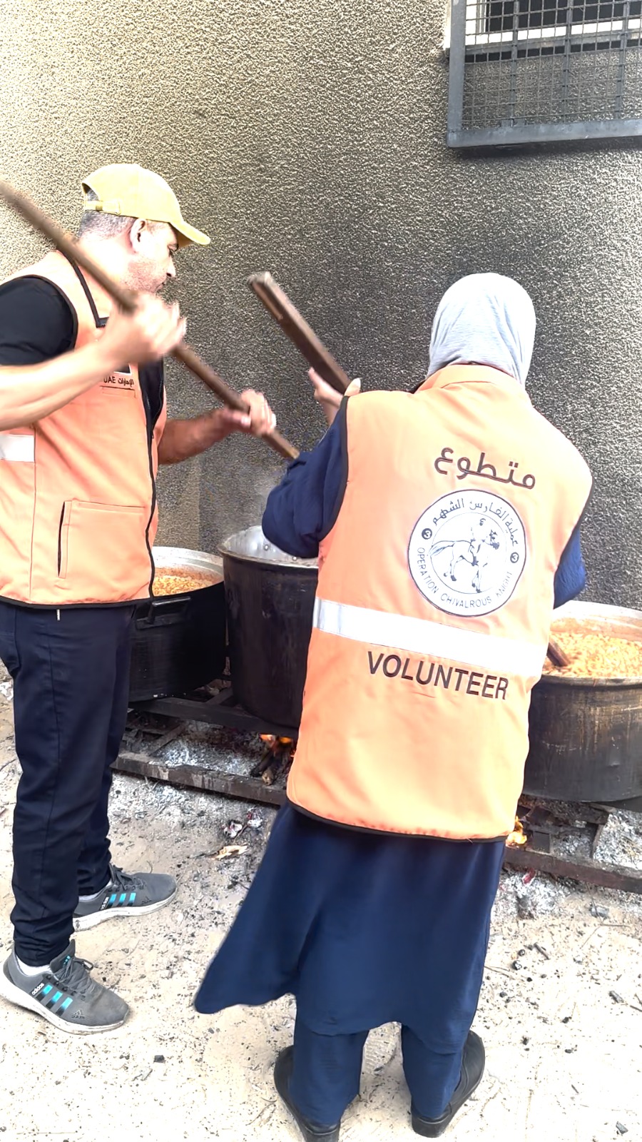 لجنة طوارئ المحافظة الوسطى تُعد الطعام لألاف النازحين في مخيم المغازي